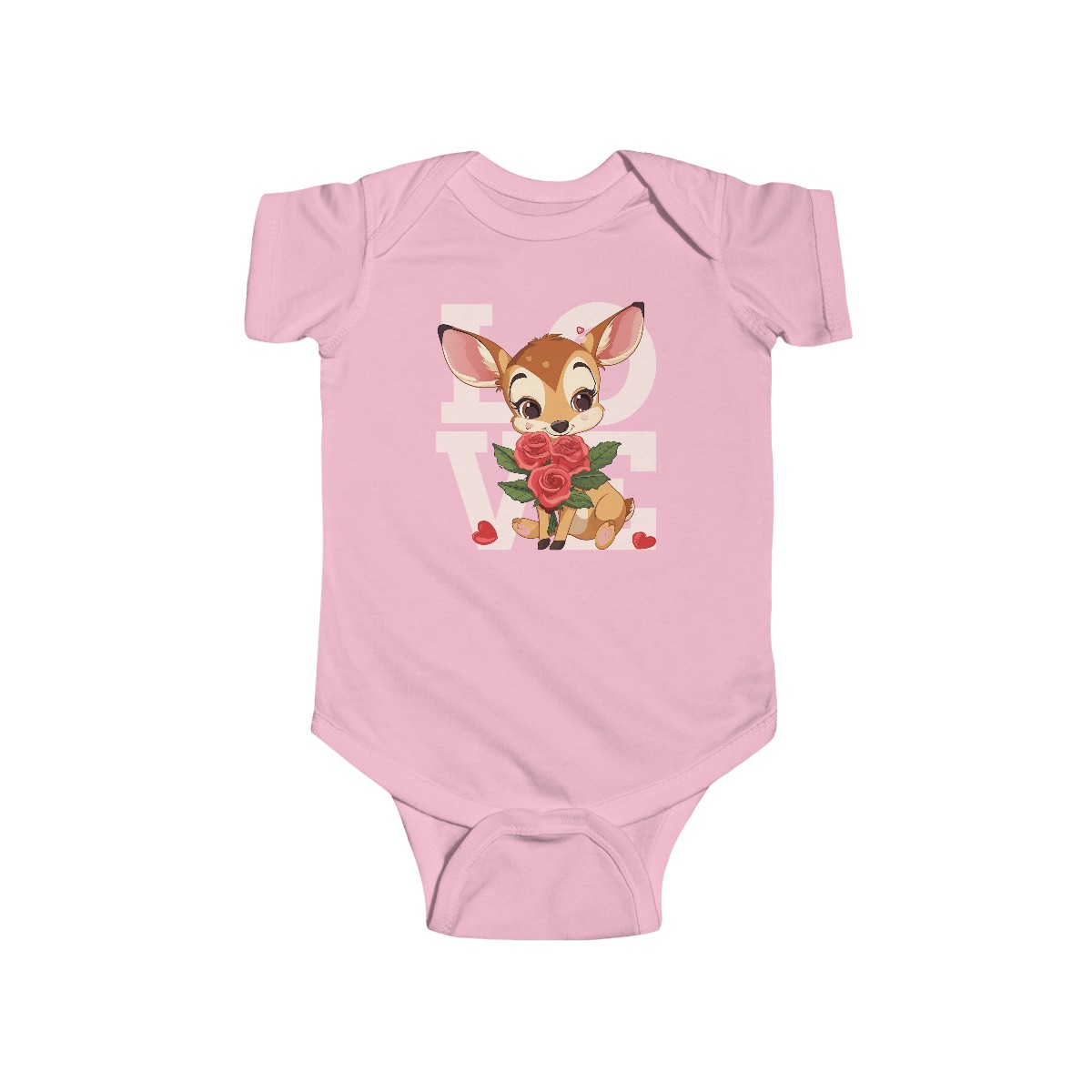 Dress your little one in adorable style with the Infant Fine Jersey Bodysuit featuring loveable cartoon baby animals. This Saint Valentine's gift is perfect for tiny tots who deserve extra cuddles. Made from soft, comfortable fabric, this bodysuit adds a touch of cuteness to your baby's wardrobe. Perfect for daily wear or as a thoughtful present for little hearts.