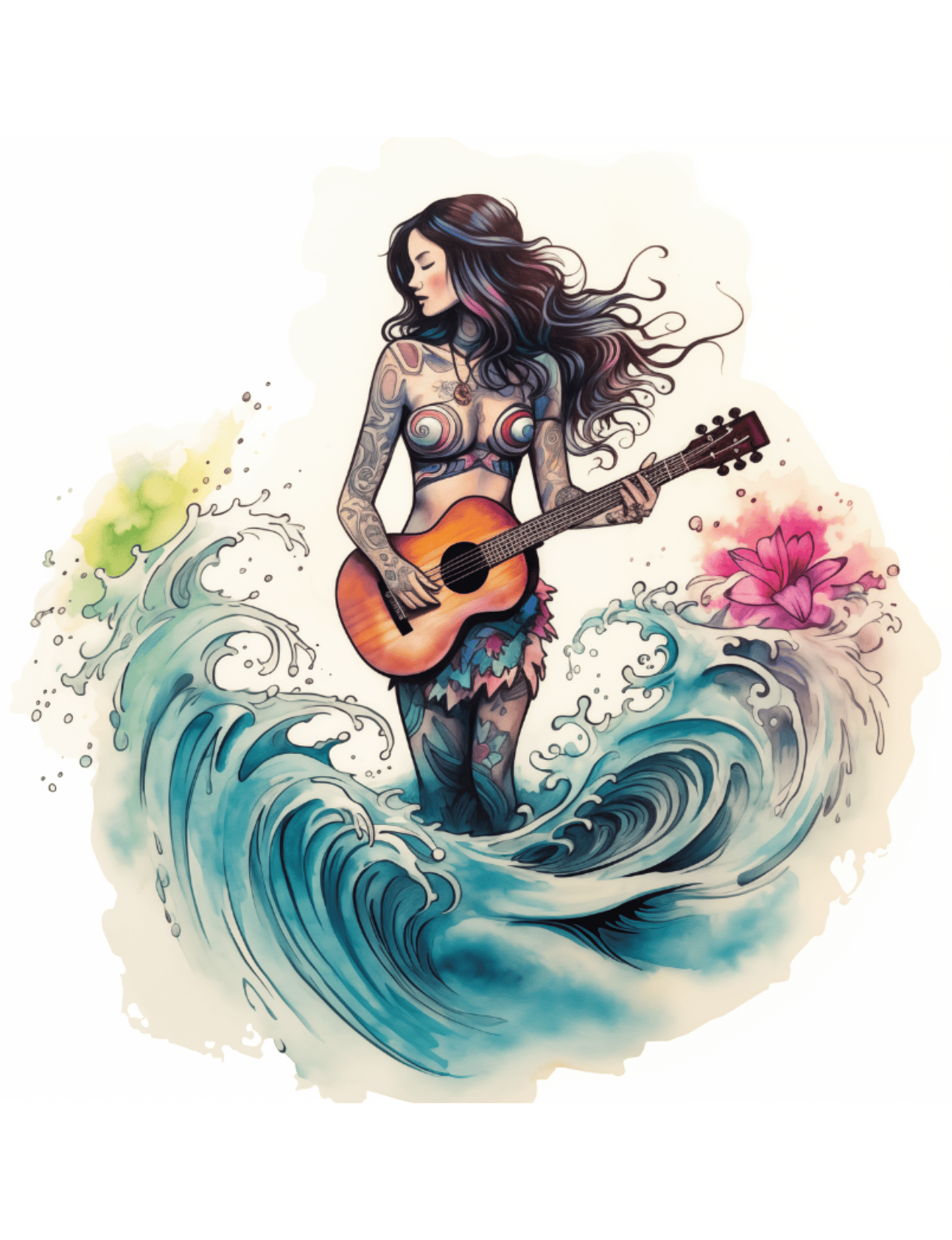 You will get an exquisite collection of 50+ watercolor-style tattoo designs featuring a dancing hula girl, carp, fierce wolf, delicate flower, majestic lion, powerful tiger, vibrant peacock, graceful flamingo, serene tree, and enchanting butterfly. Express your unique style with these downloadable and printable tattoo inspirations. Instantly elevate your body art game with this diverse and artistic tattoo bundle.