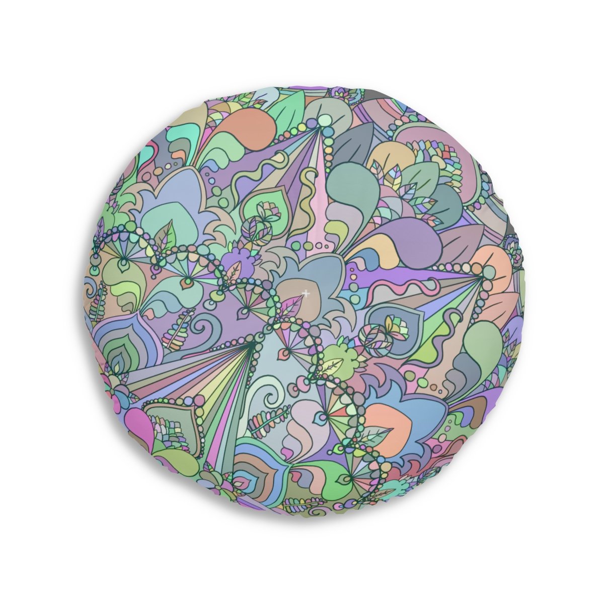 Add a mandala art touch to any resting area around the house with a Mandala Art round tufted floor pillow, which has a colorful mandala Drawn by Hand in the middle, that features bright colors. Shipped with its own filling, this floor pillow is as comfy as it is stylish. Bring your resting areas to life by adding a touch of stylish artwork and catchy colors.