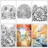 This bundle includes three traditional coloring books and one unique reverse coloring book, offering a diverse range of landscapes.