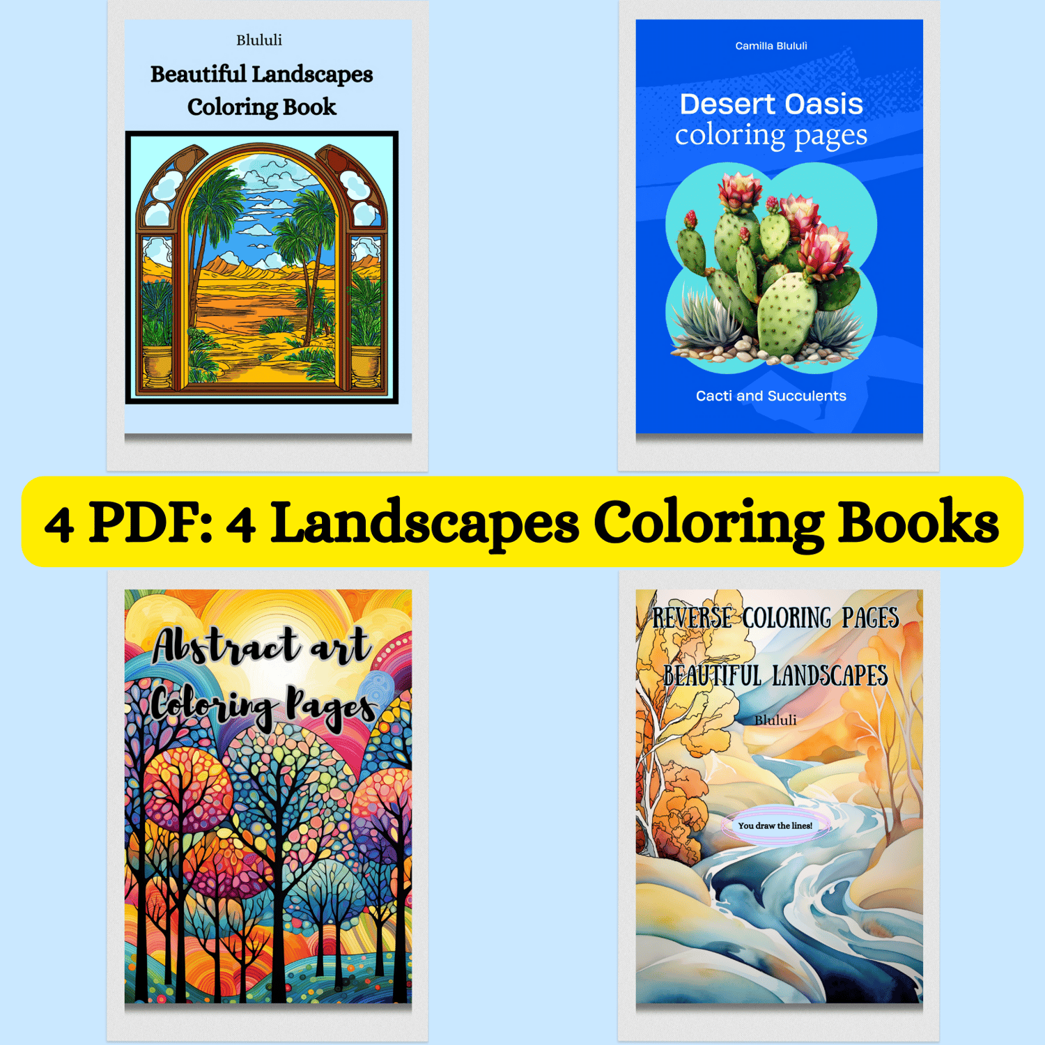 Landscapes Coloring Pages Bundle: 4 PDF books, 139 Coloring Pages, Beautiful Landscapes, Reverse Coloring Pages,Desert Oasis,Beautiful Views