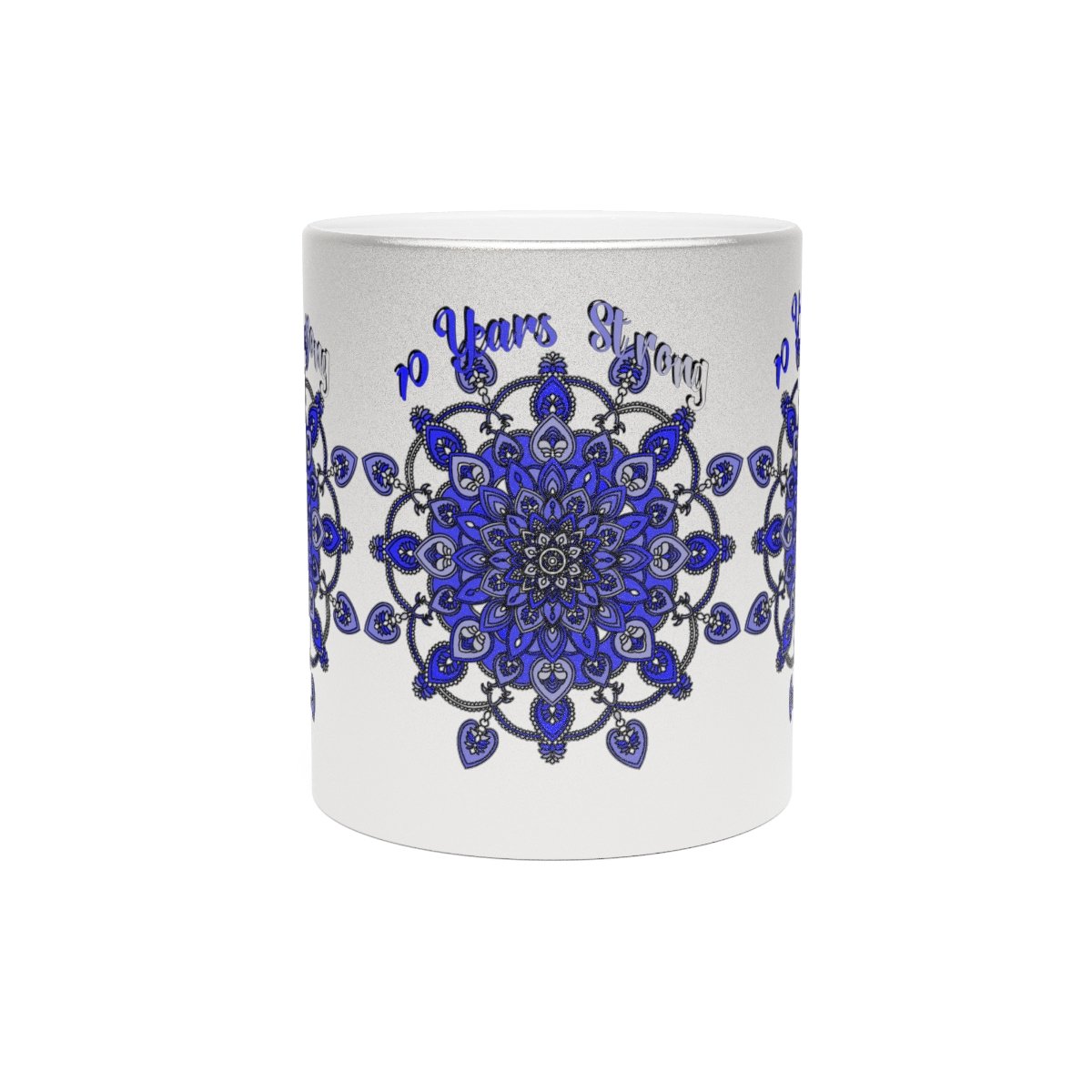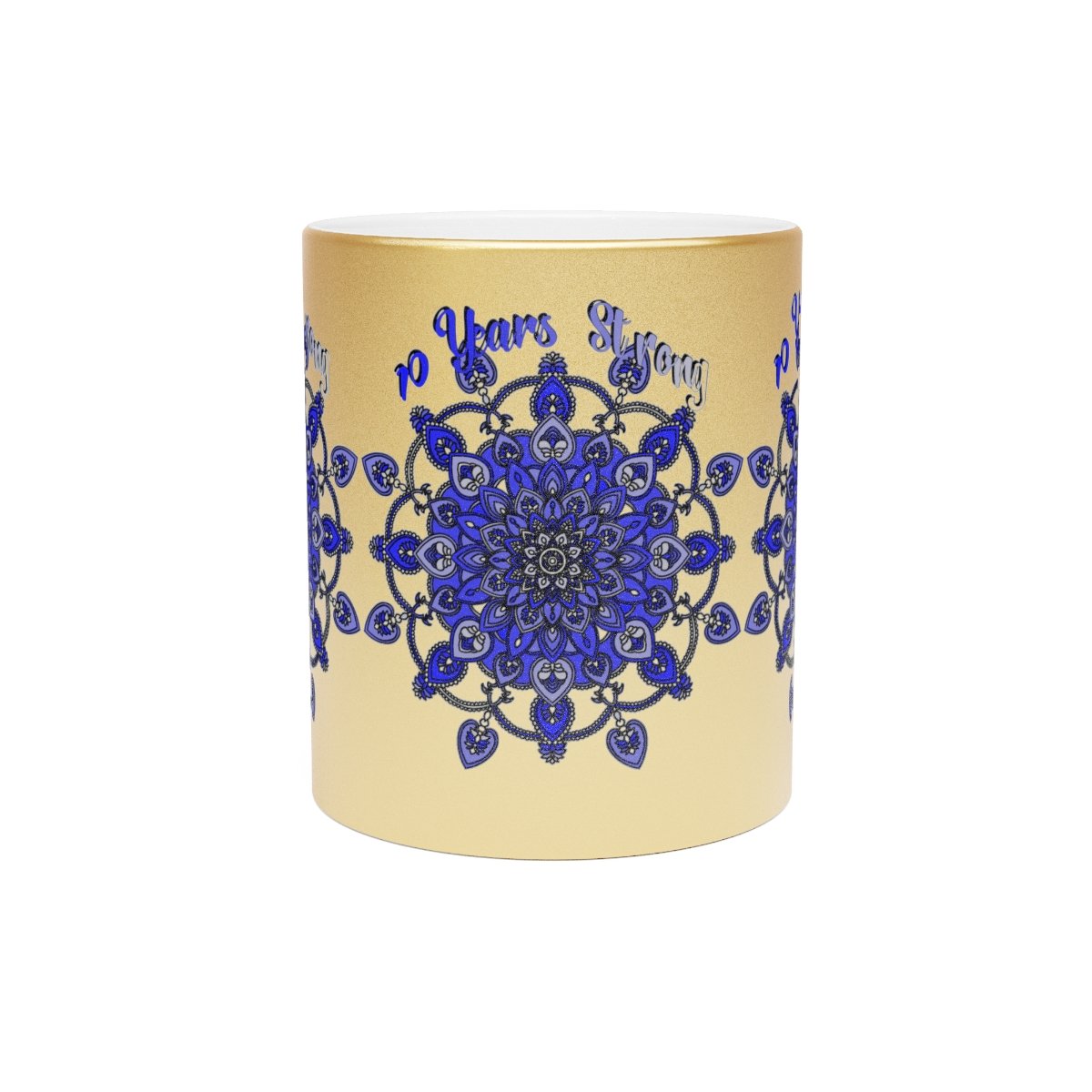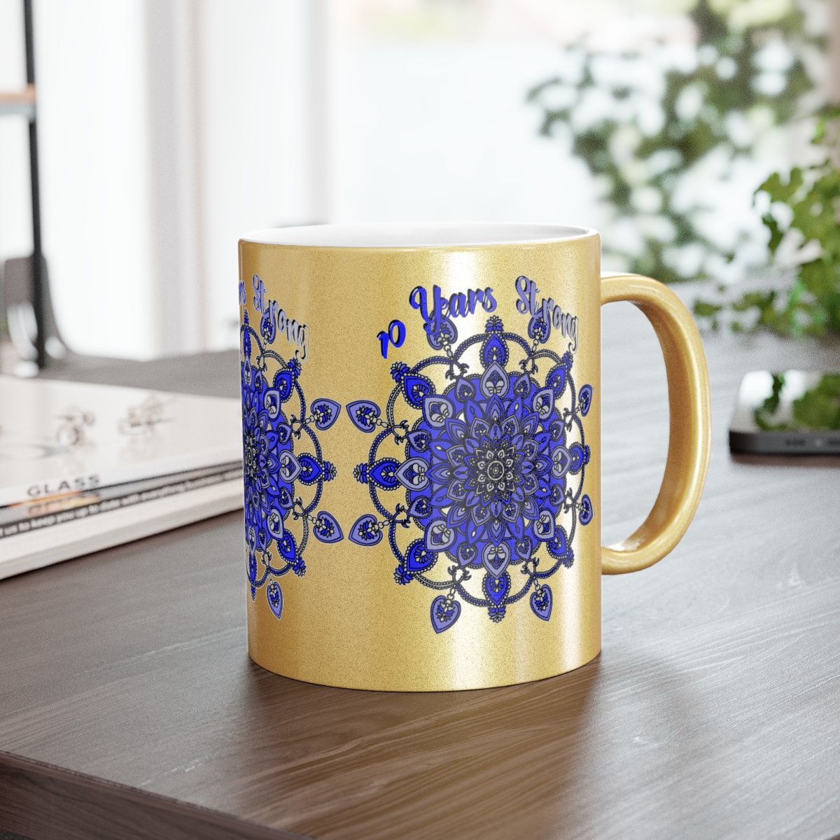 10th Anniversary Metallic Mug "10 Years Strong" - Hand Drawn Mandala Design in Gold & Silver | Perfect Tin/Aluminum Anniversary Gift