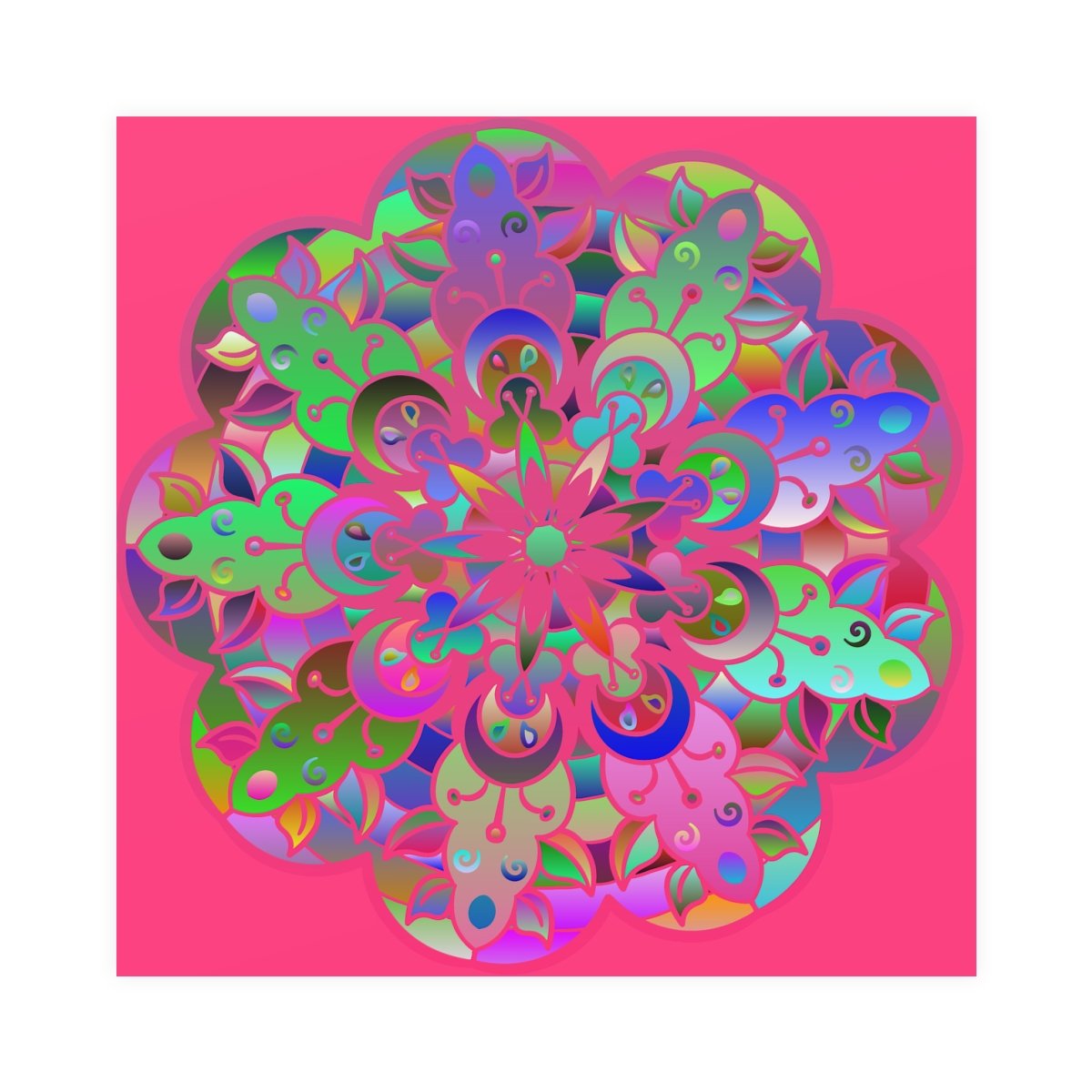 Square Matte Paper Poster Featuring Hand-Drawn Bright Mandala Art - Medium Pink