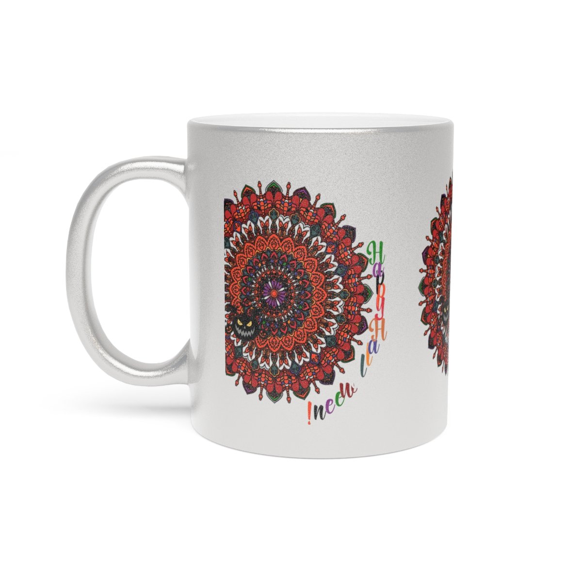 Discover the elegance of hand-drawn art with our Personalized Halloween Mandala Metallic Mug. Order yours today and enjoy a touch of seasonal sophistication!
