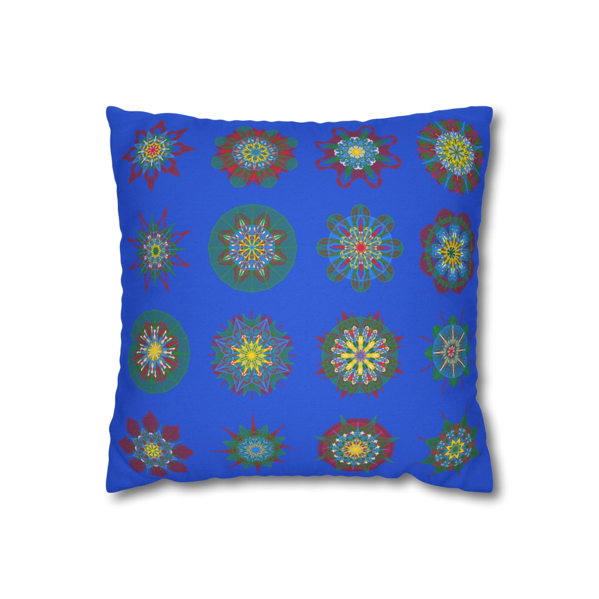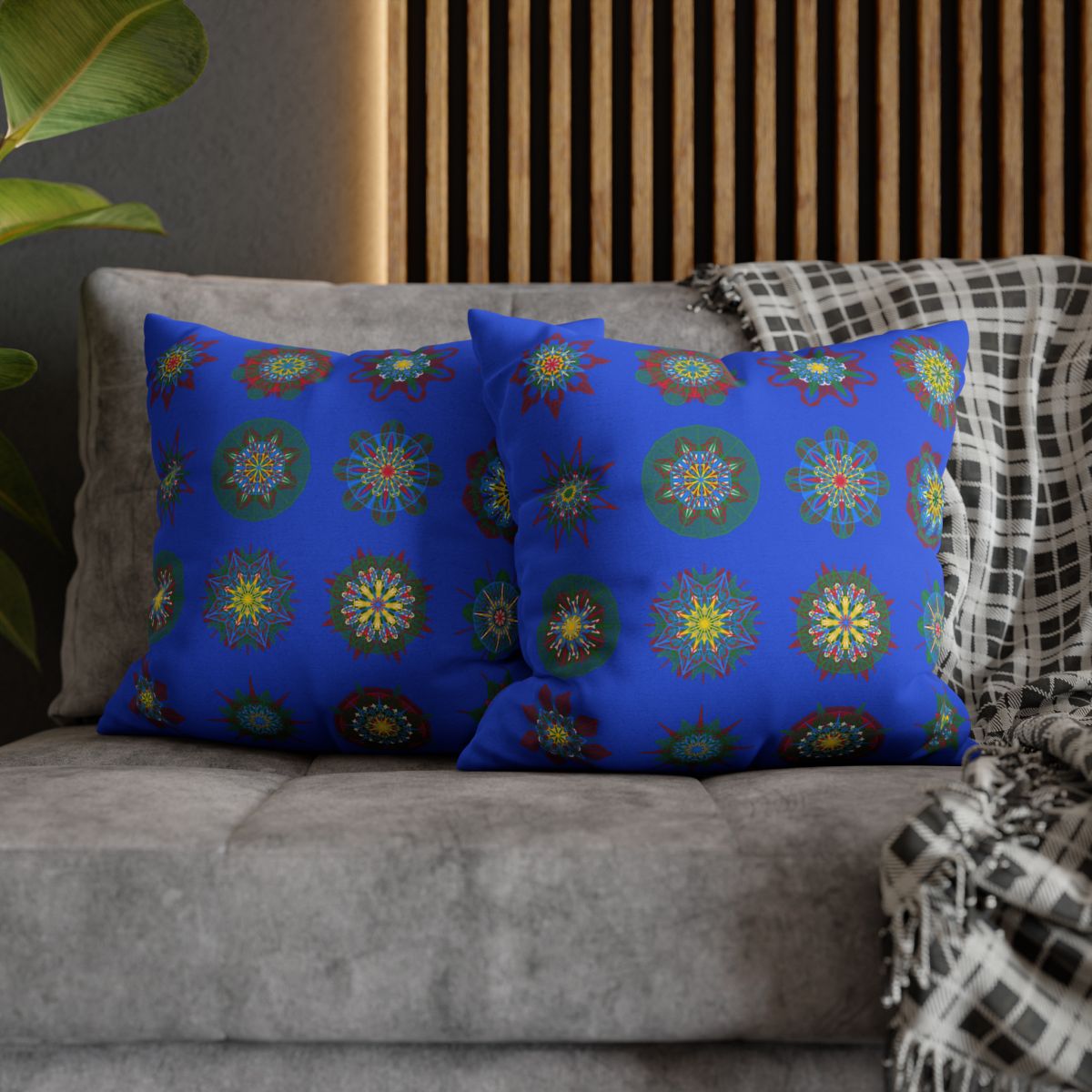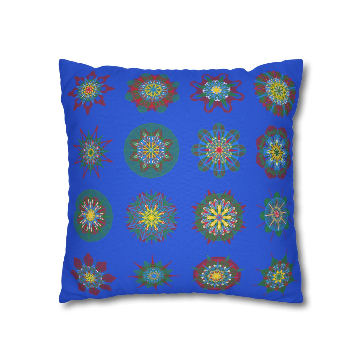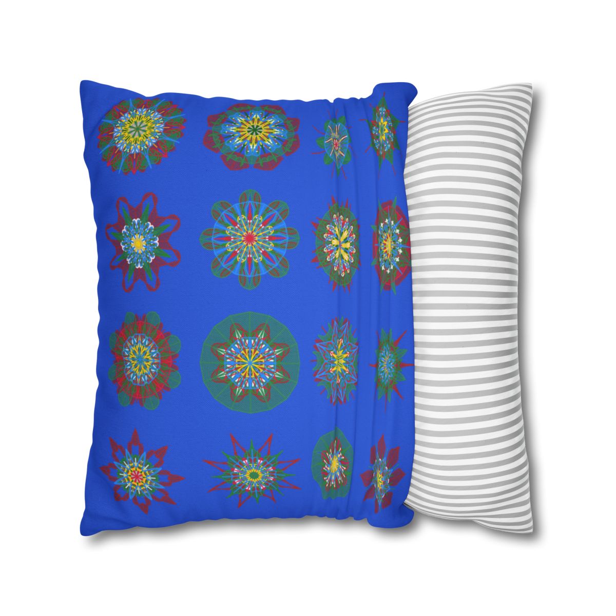 Christmas pillowcase for bed - Spun Polyester Square Pillowcase Mandala Art - Original Fine Art - Hand-drawn, Royal Blue