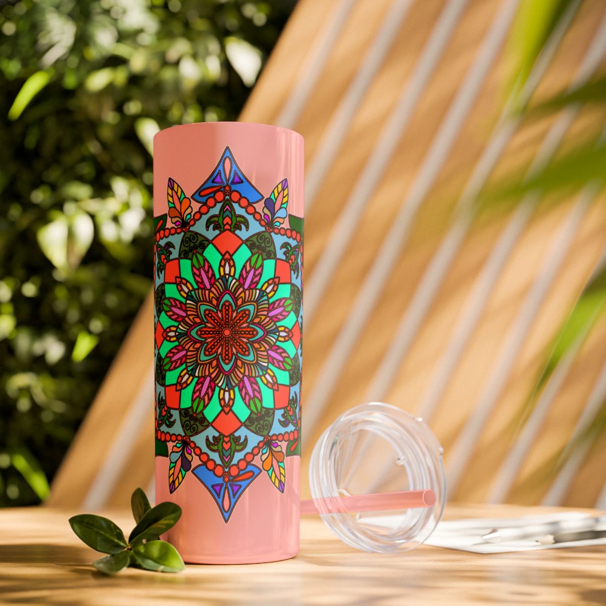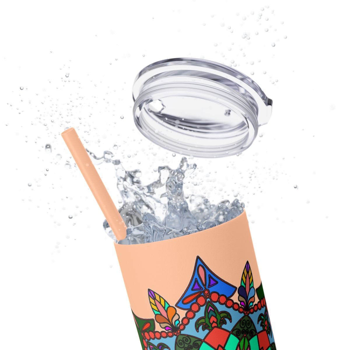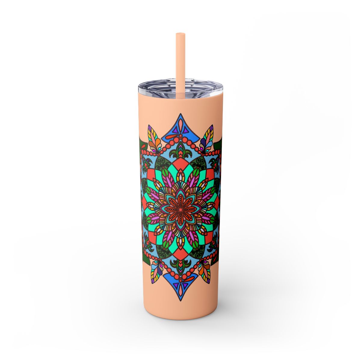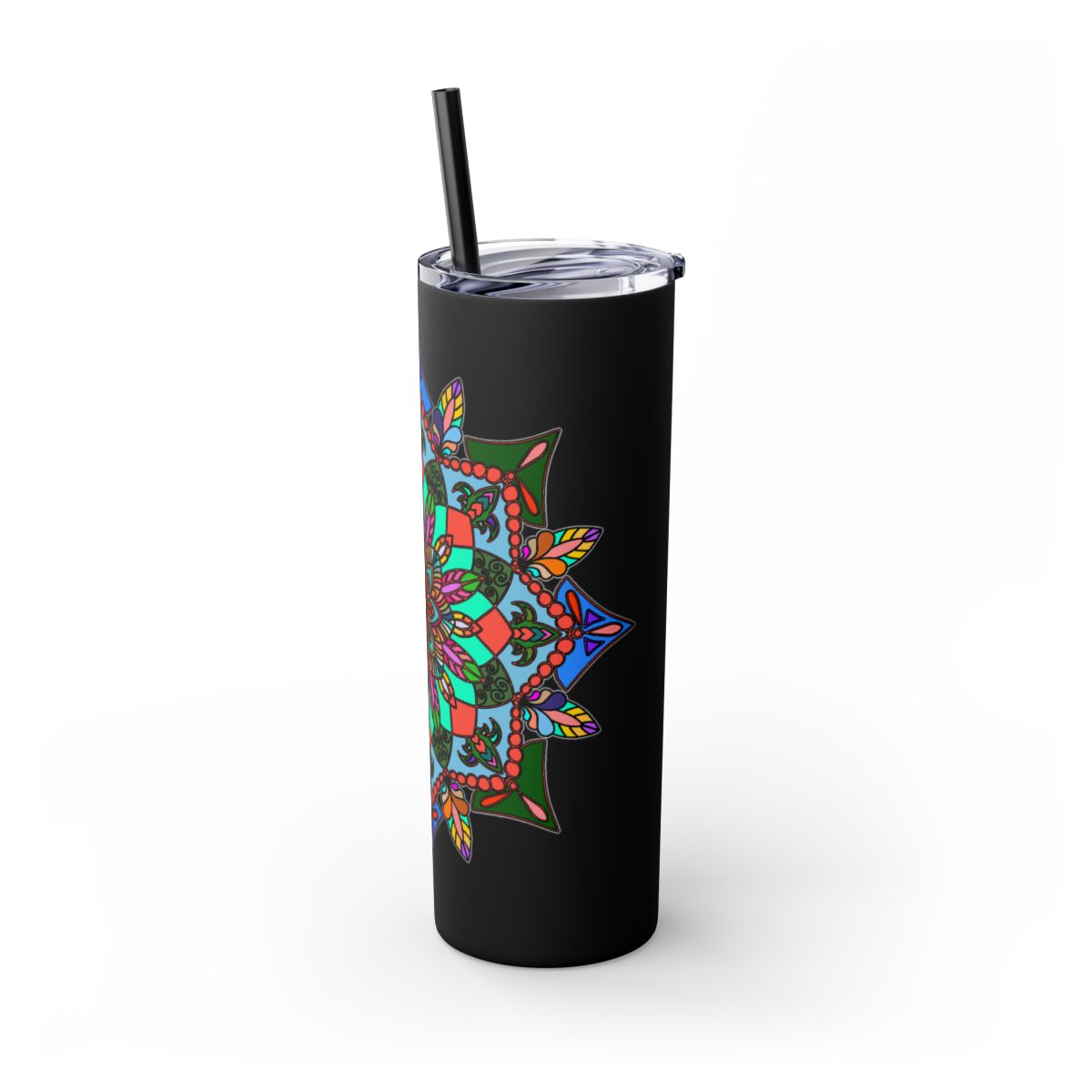 20oz Skinny Tumbler with Hand-drawn Colorful Mandala Design - Keeps Drinks Hot/Cold - BPA-Free