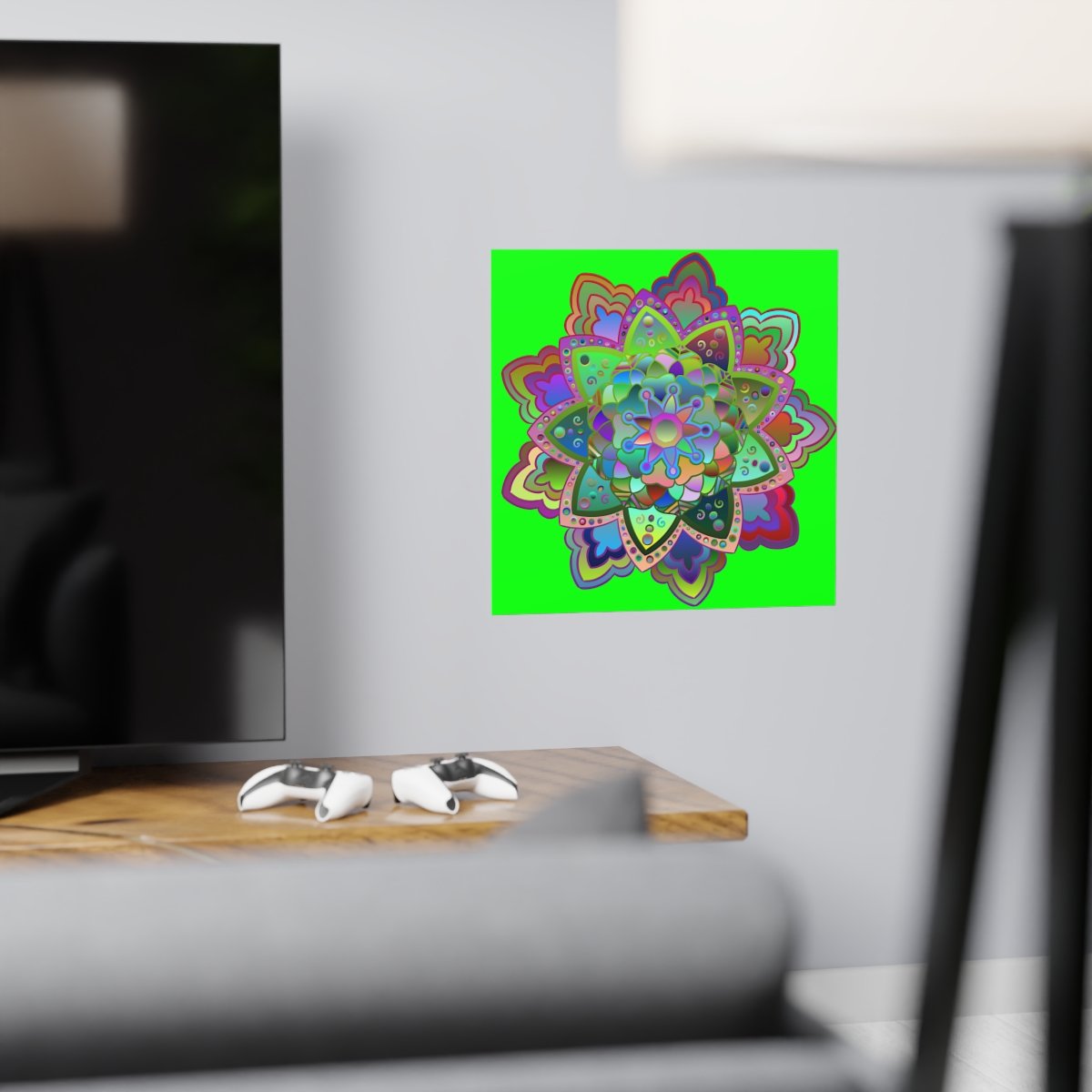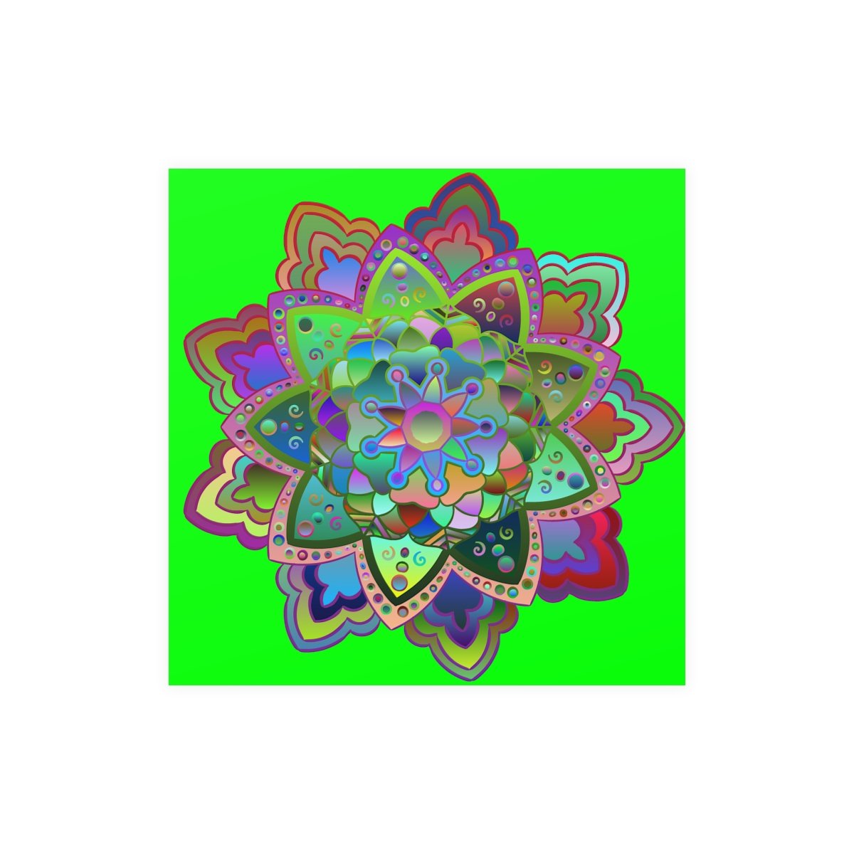 Transform any space with the vibrant allure of custom artwork. This square poster, adorned with super bright, hand-drawn mandala art, is designed to elevate any room with its vivid colors and intricate details.