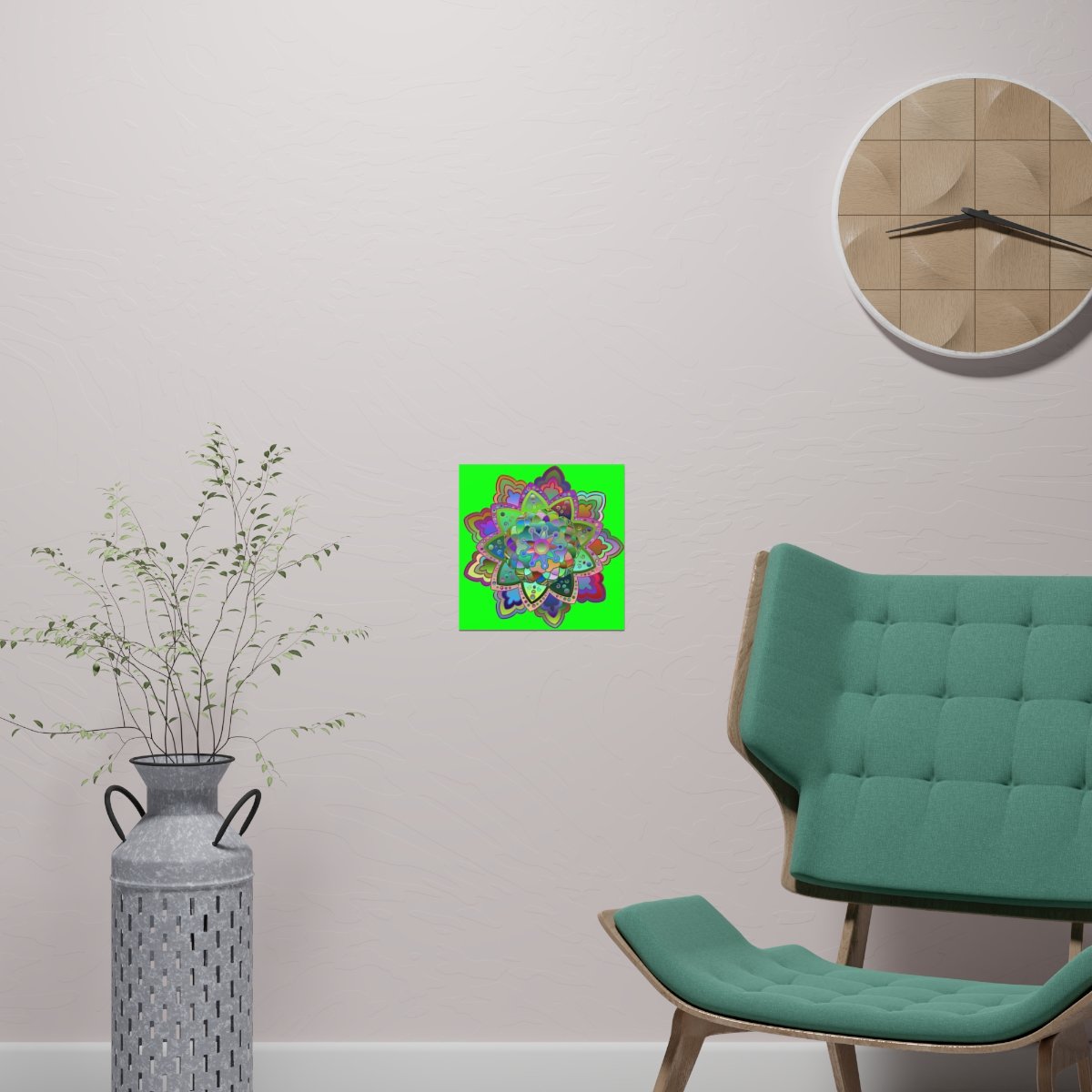 Square Matte Paper Poster Featuring Hand-Drawn Bright Mandala Art - Green