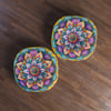 Add a mandala art touch to any resting area around the house with a Mandala Art round tufted floor pillow, which has a colorful mandala in the middle, that features bright colors. Shipped with its own filling, this floor pillow is as comfy as it is stylish. Bring your resting areas to life by adding a touch of stylish artwork and catchy colors.