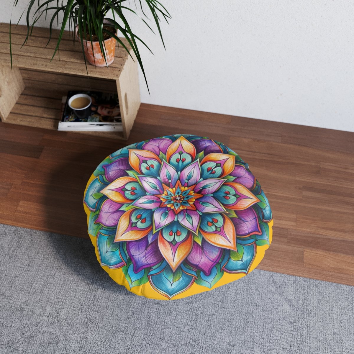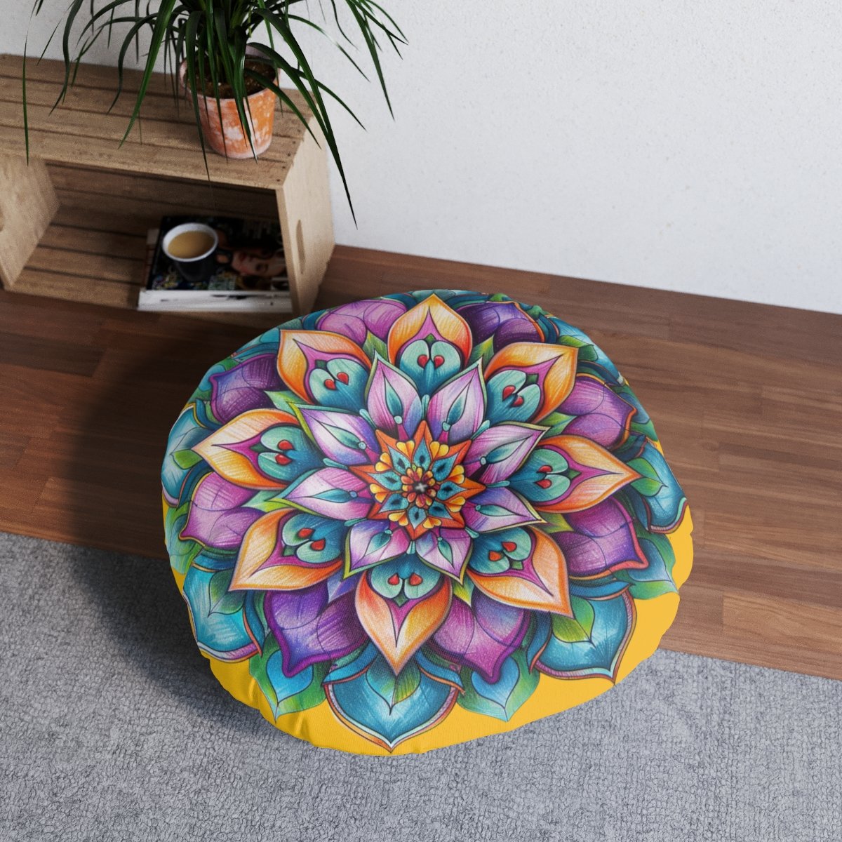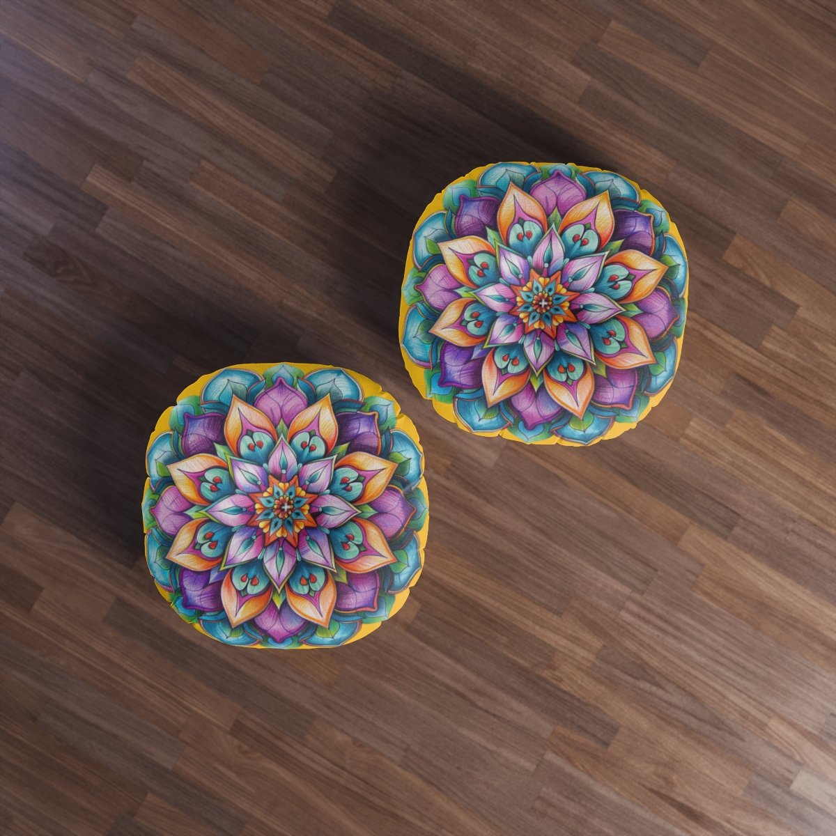 Mandala Art Floor Cushion - Tufted Floor Pillow, Round