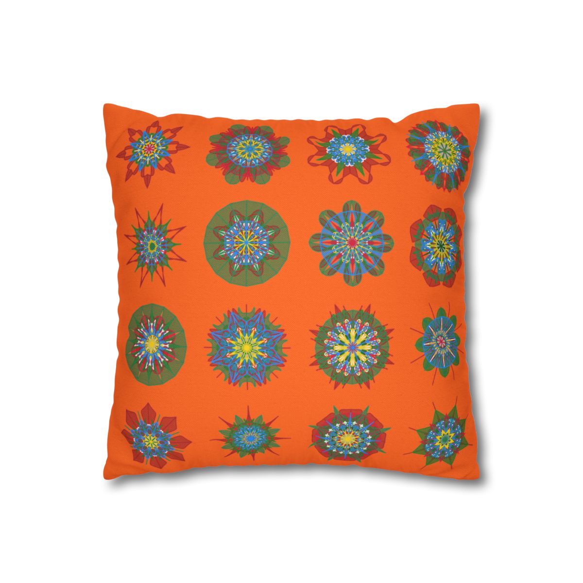 Christmas pillowcase for bed - Spun Polyester Square Pillowcase Mandala Art - Original Fine Art - Hand-drawn, Orange-Red