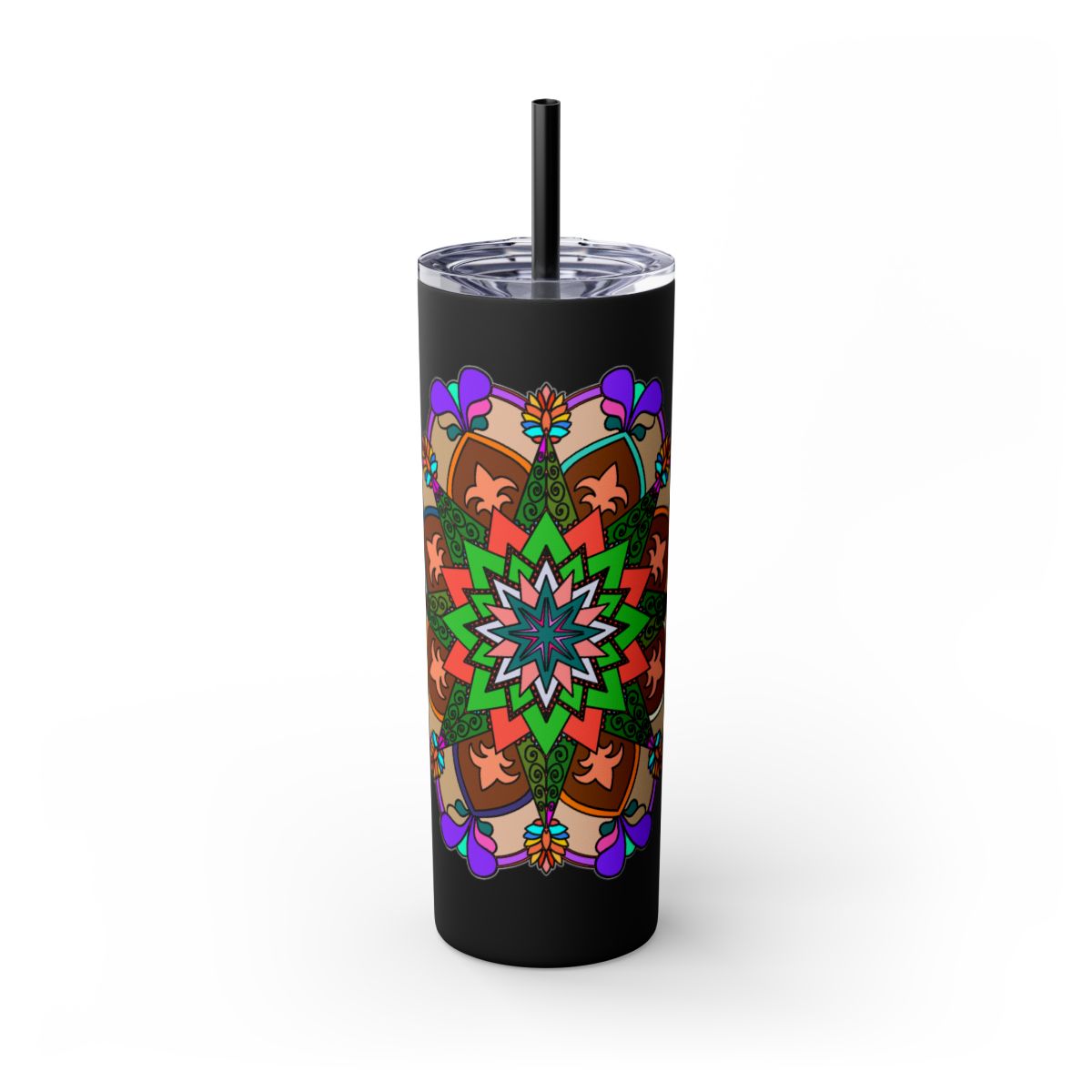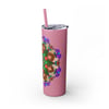 20oz Skinny Tumbler with Hand-drawn Colorful Mandala Design - Keeps Drinks Hot/Cold - BPA-Free