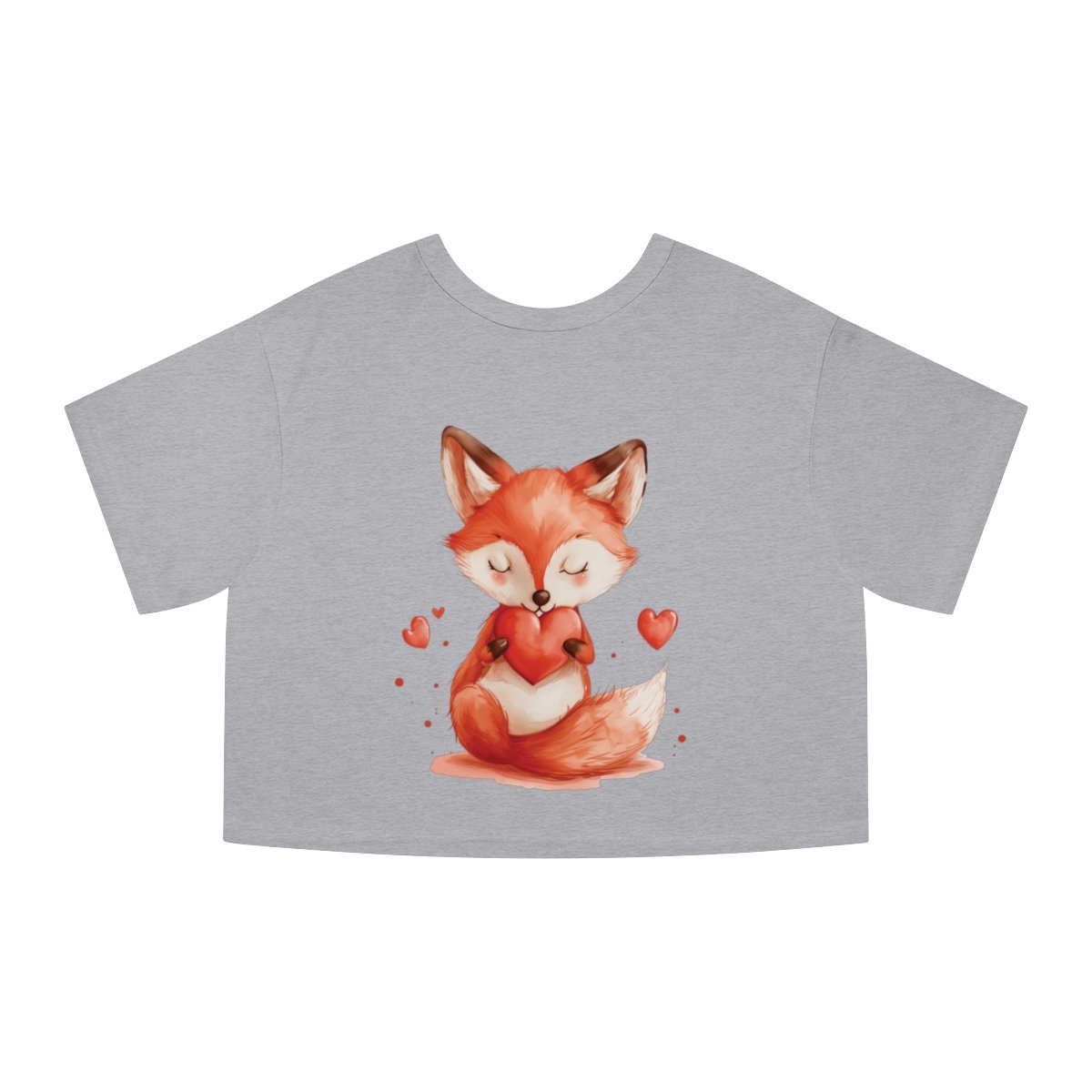 Women Cropped T-Shirt | Loveable Fox Valentines Day gift for Her | Cute Animals | Love Hearts