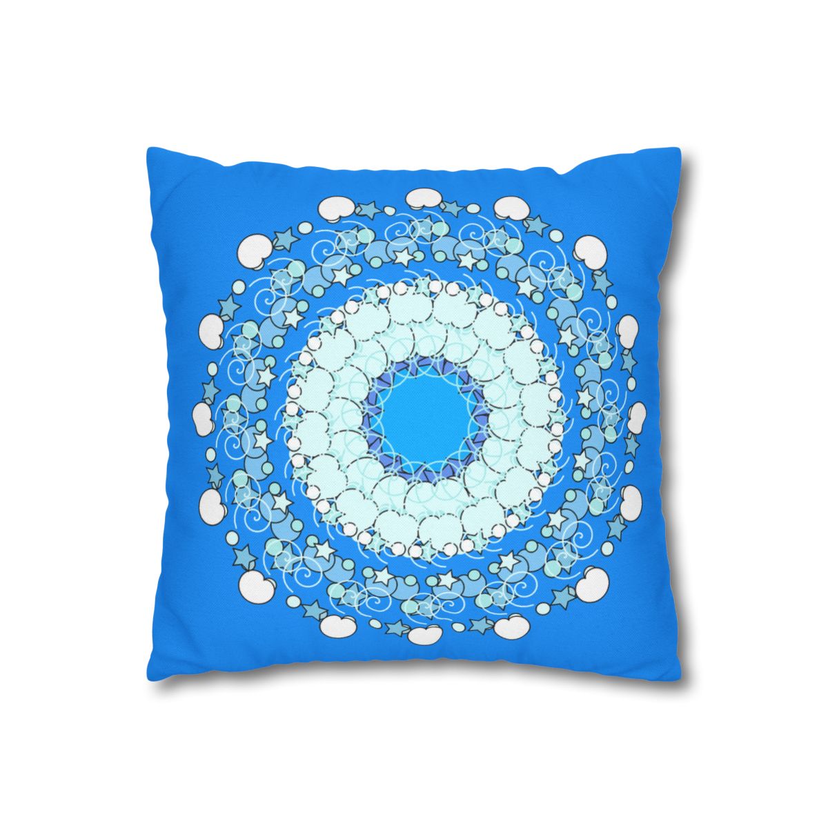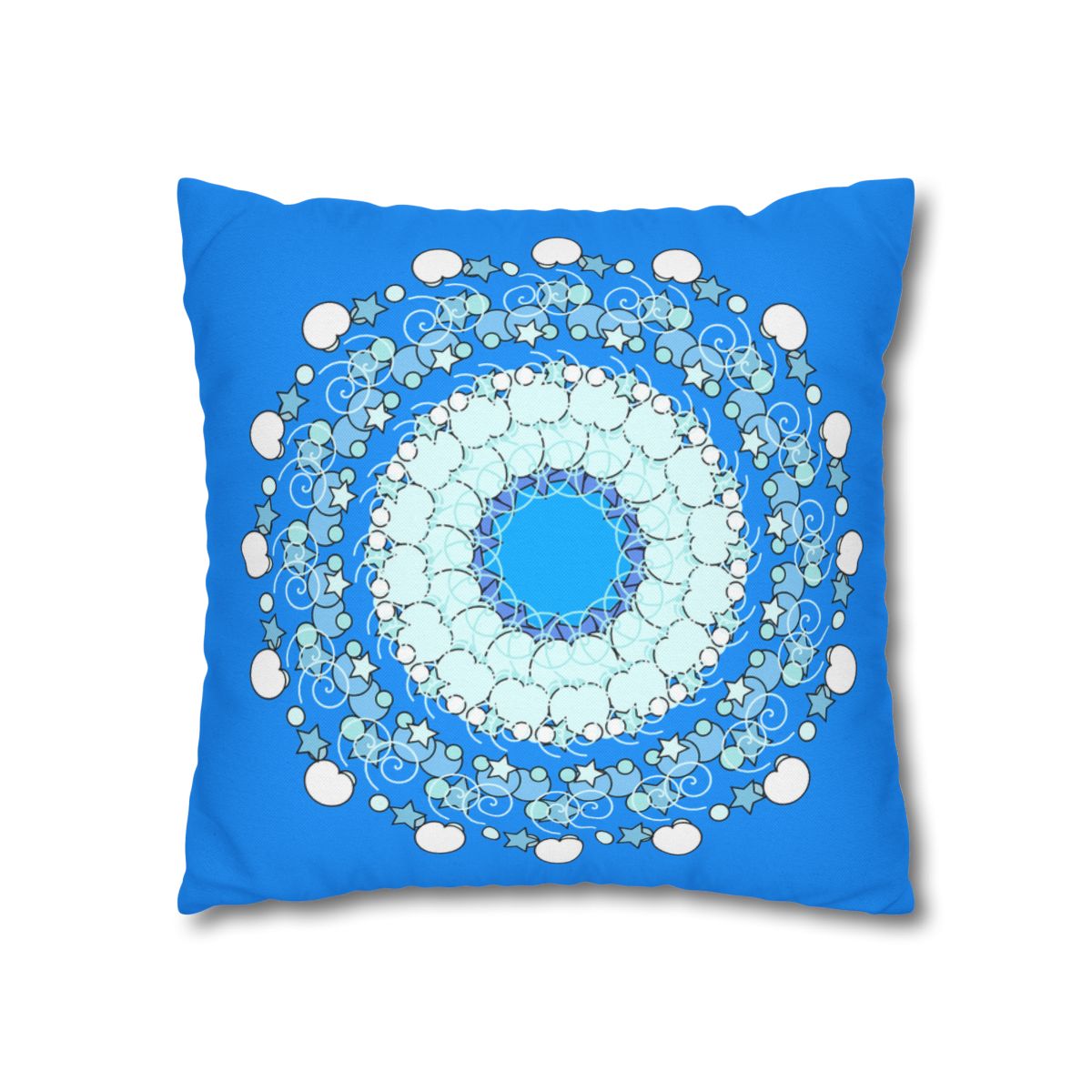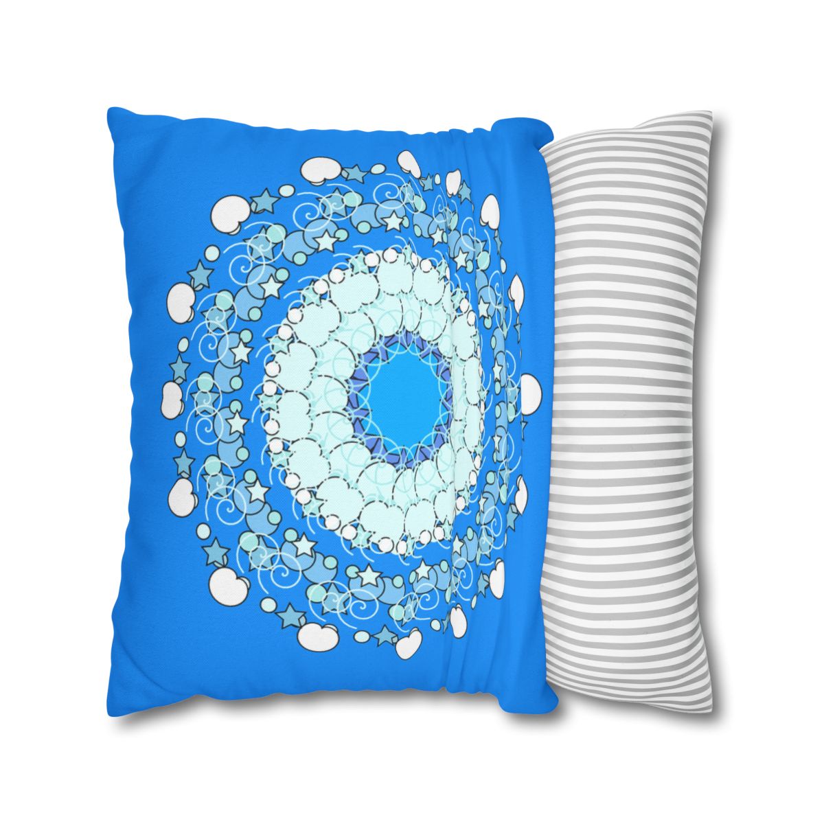 Christmas Snowflakes Pillowcase for Kids' Bed - Spun Polyester Square Pillowcase Mandala Art - Original Fine Art - Hand-drawn, Sky Blue