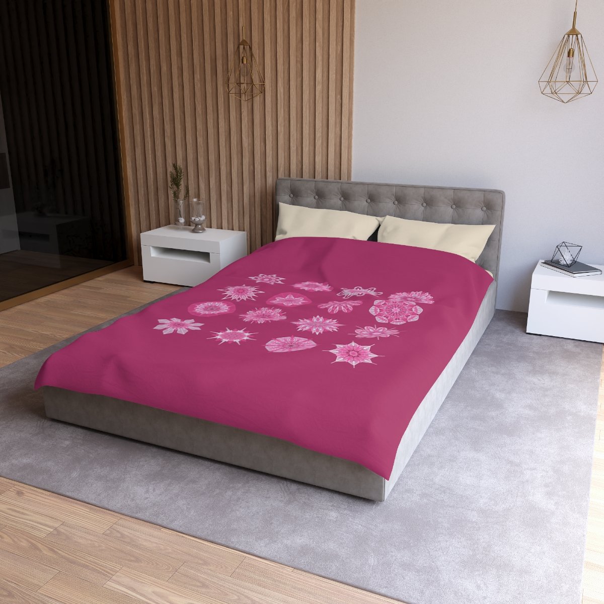 Microfiber Duvet Cover Mandala Art Drawn by Hand - Mandala on Dark Hot Pink background