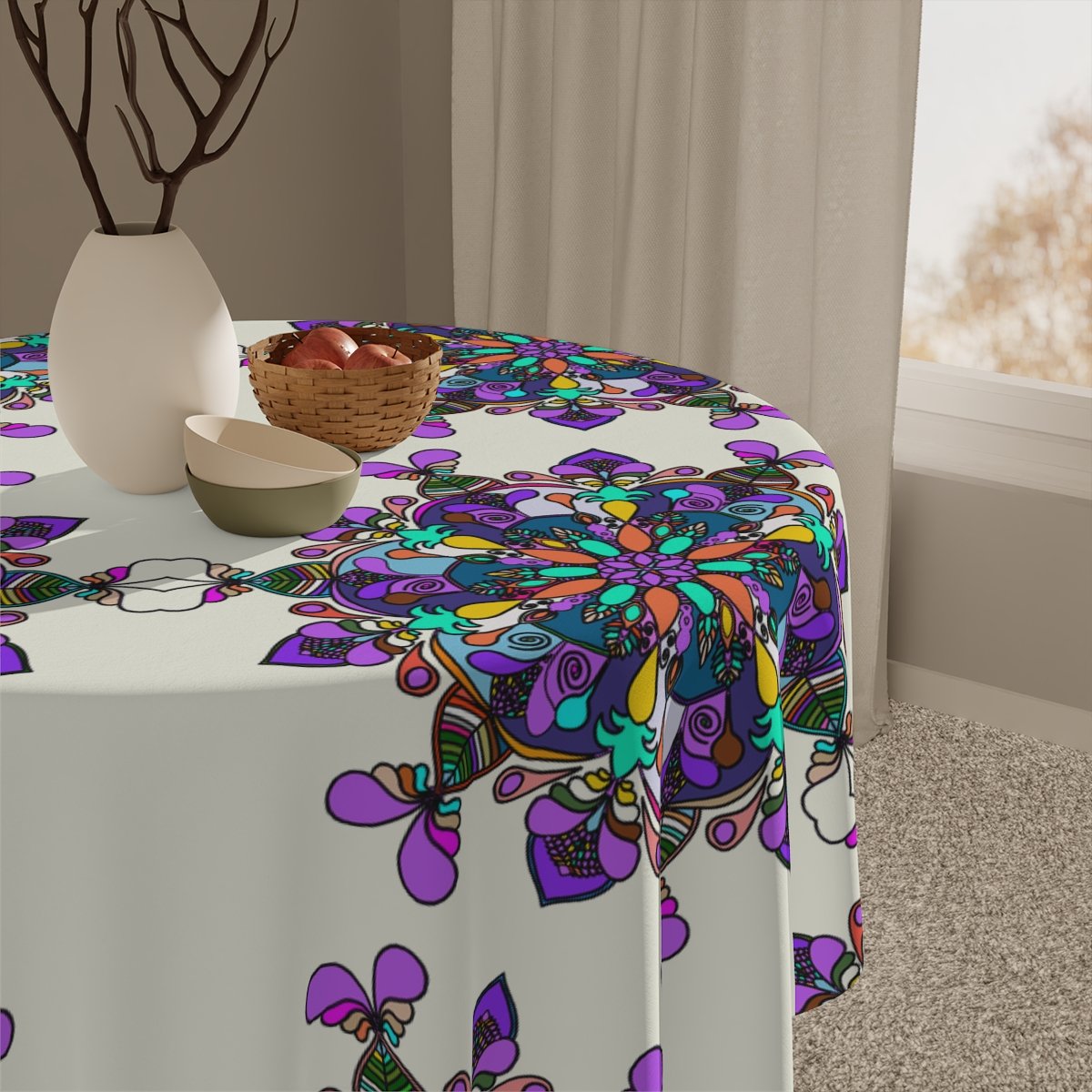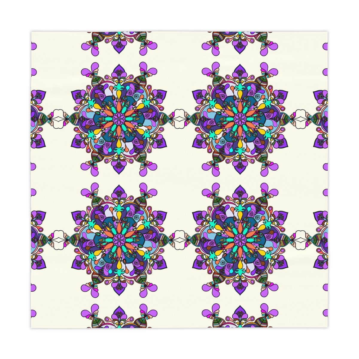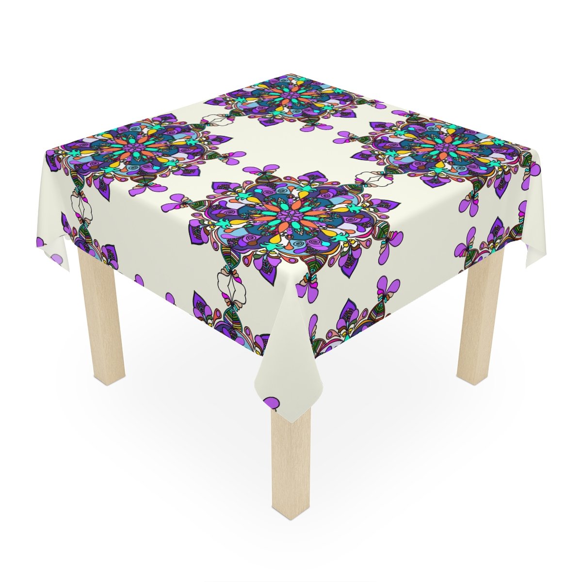 Uplift any home's aesthetics with this personalized tablecloth. Each Mandala Art is Drawn by Hand. Measuring in at 55.1" by 55.1", this personalized table cloth is a full-print product. What's more, the 100% polyester fabric construction makes it effortless to maintain like new.