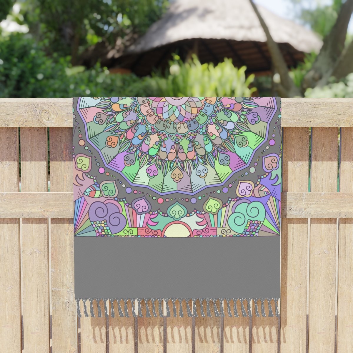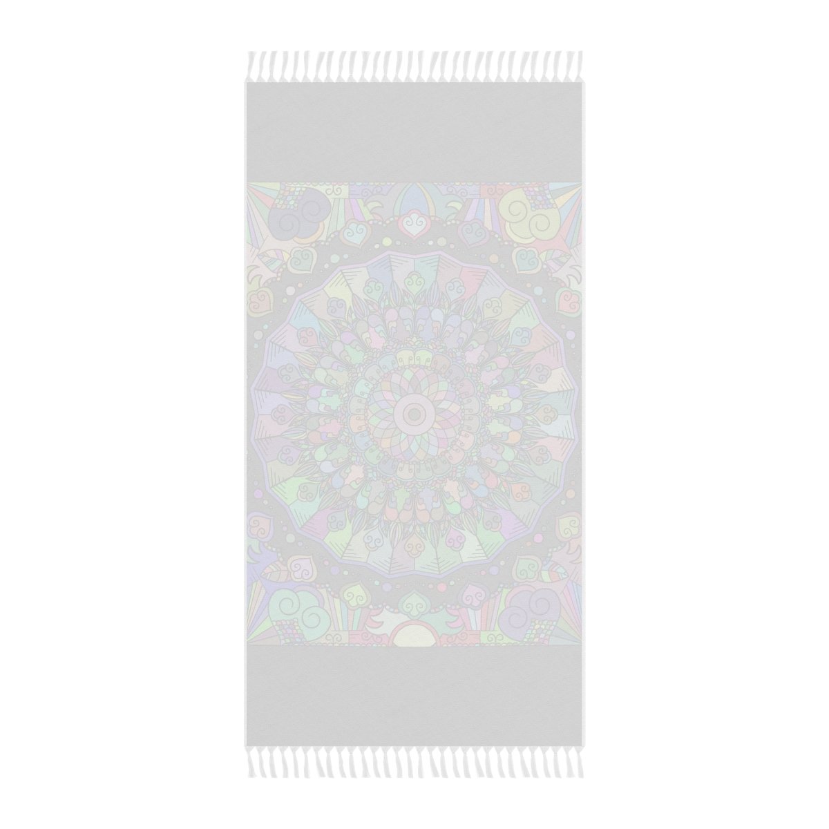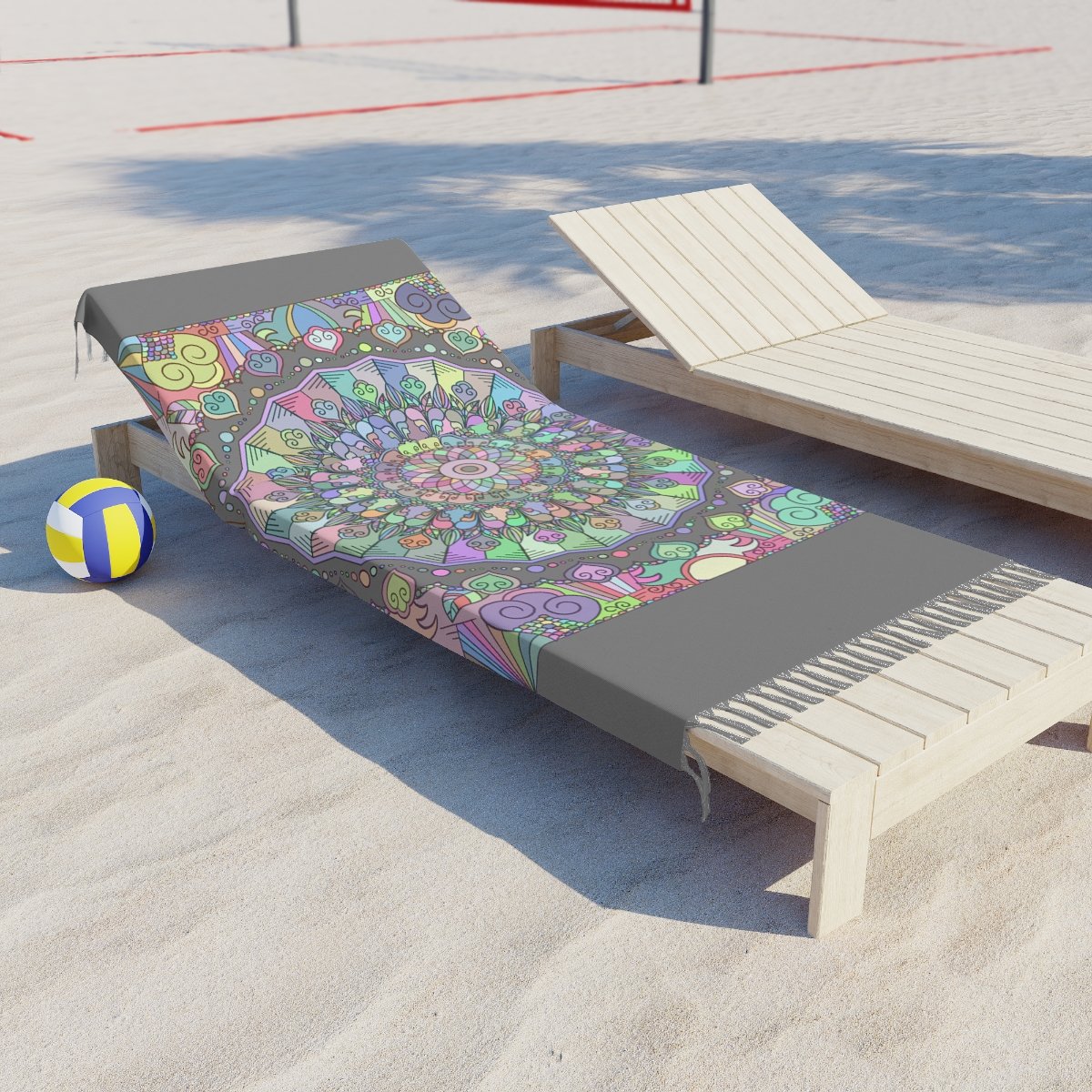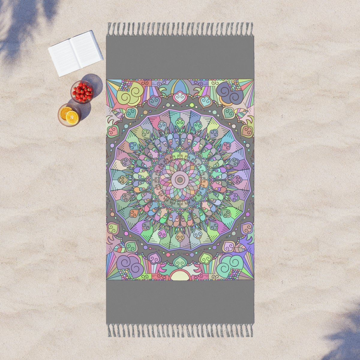Boho Beach Cloth decorated with Mandala Art - Original Fine Art Hand-Drawn - Light Gray, Pastel Colors