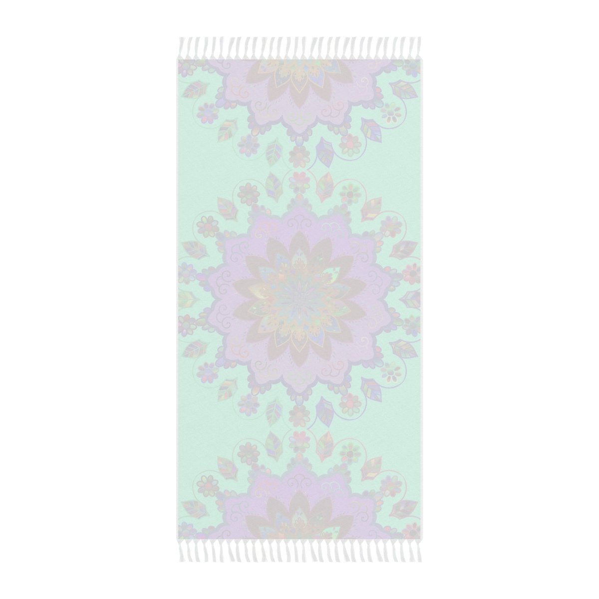 Boho Beach Cloth decorated with Mandala Art - Original Fine Art Hand-Drawn - Aquamarine