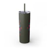The Maars personalized skinny tumblers keep your drinks hot for 12h and cold for 24h, making them the perfect sipping companion all year round. With 20oz capacity, these tumblers come in a matte or glossy finish, and feature a tapered shape with a slim design for effortless carriage. The plastic press-on lid with color-matching straw makes for great practicality on the go, while all components are BPA-free and non-toxic; aka perfect for the whole family.