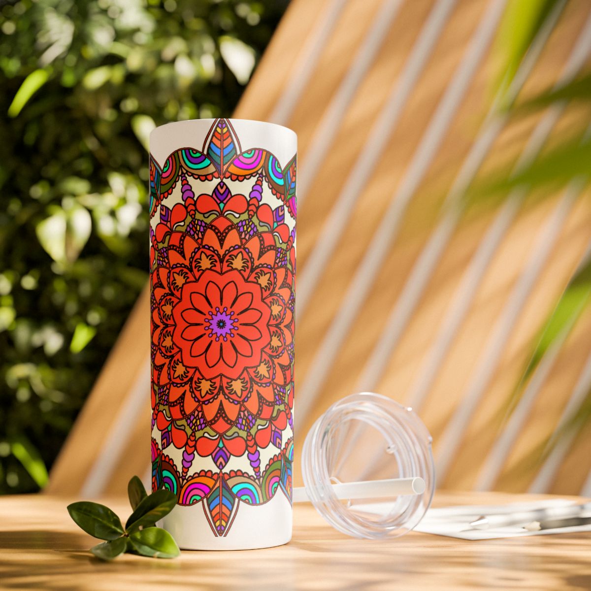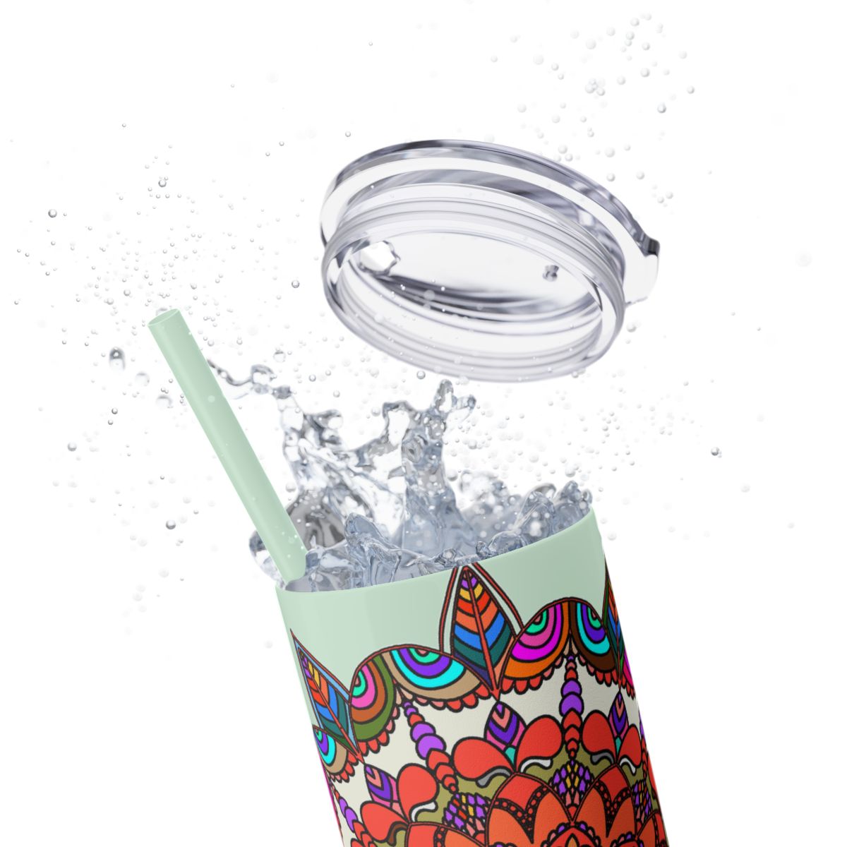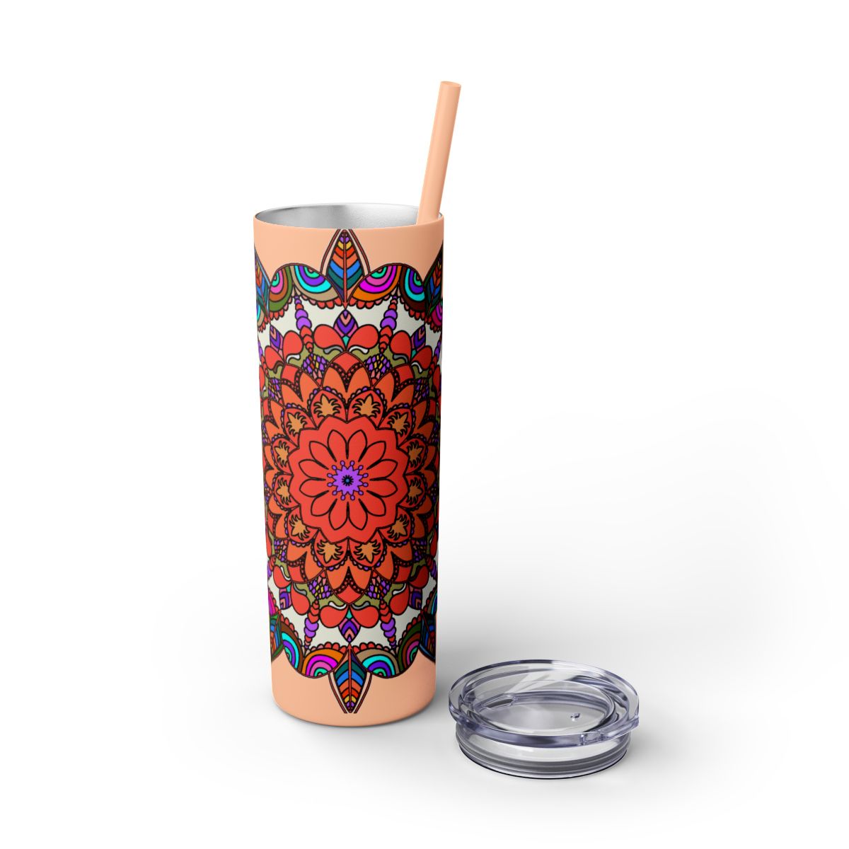 20oz Skinny Tumbler with Hand-drawn Colorful Mandala Design - Keeps Drinks Hot/Cold - BPA-Free