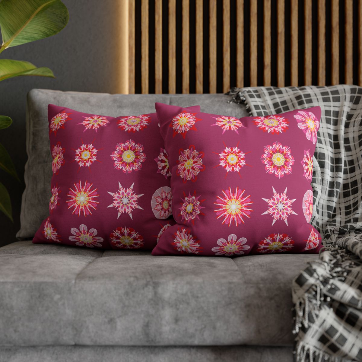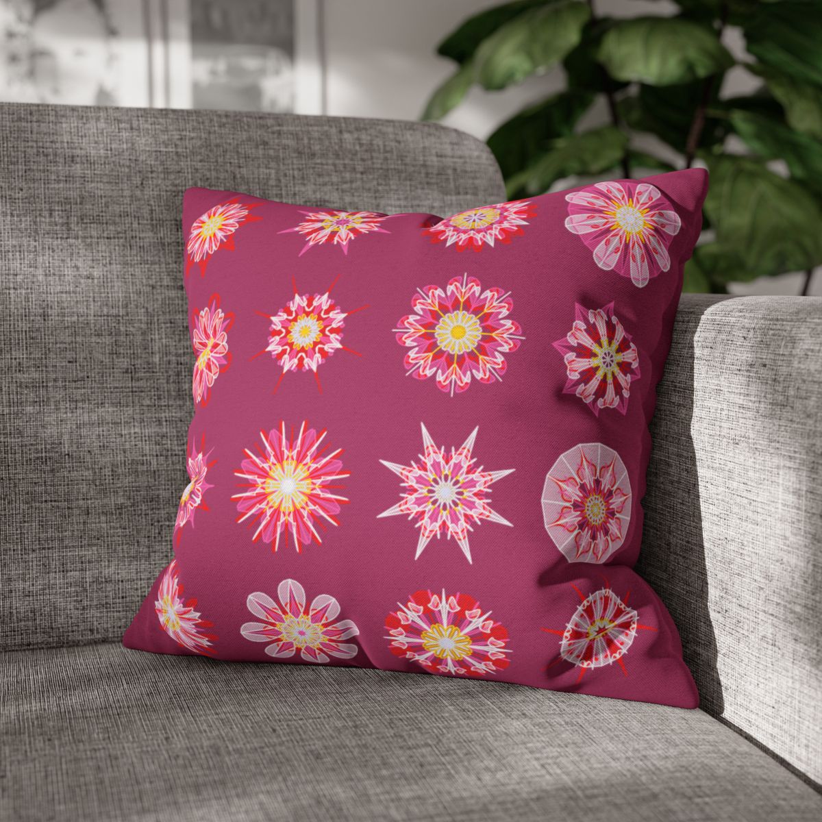 Christmas pillowcase for bed - Spun Polyester Square Pillowcase Mandala Art - Original Fine Art - Hand-drawn, Dark Hot Pink