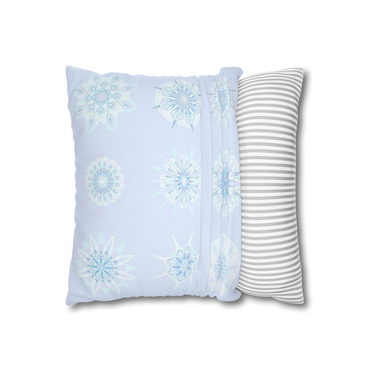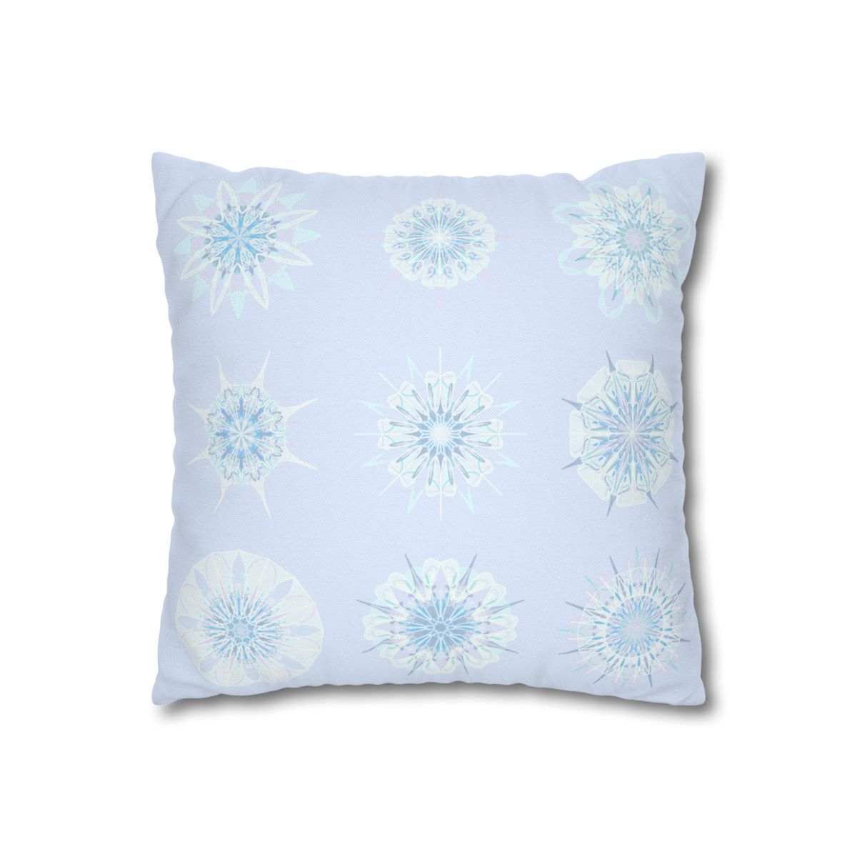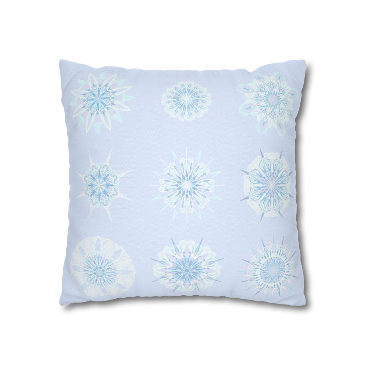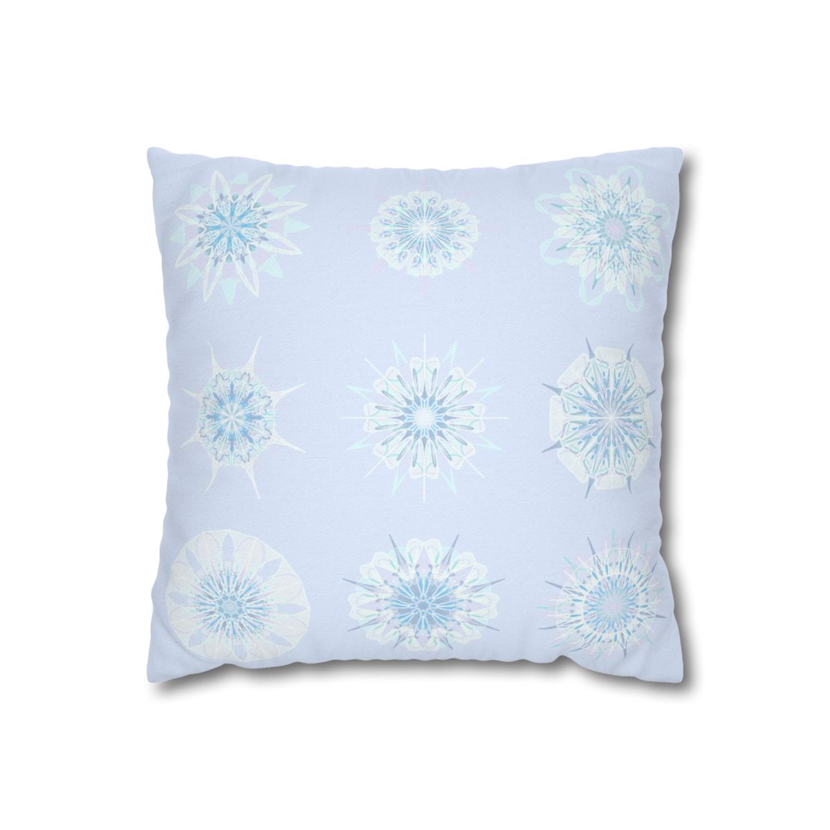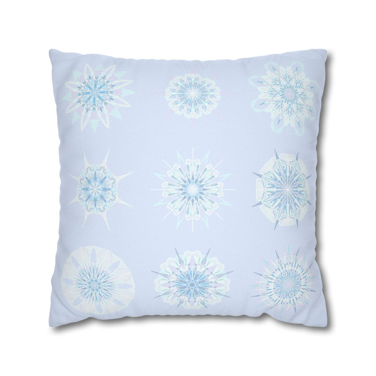 Christmas Snowflakes pillowcase for bed - Spun Polyester Square Pillowcase Mandala Art - Original Fine Art - Hand-drawn, Icy Blue