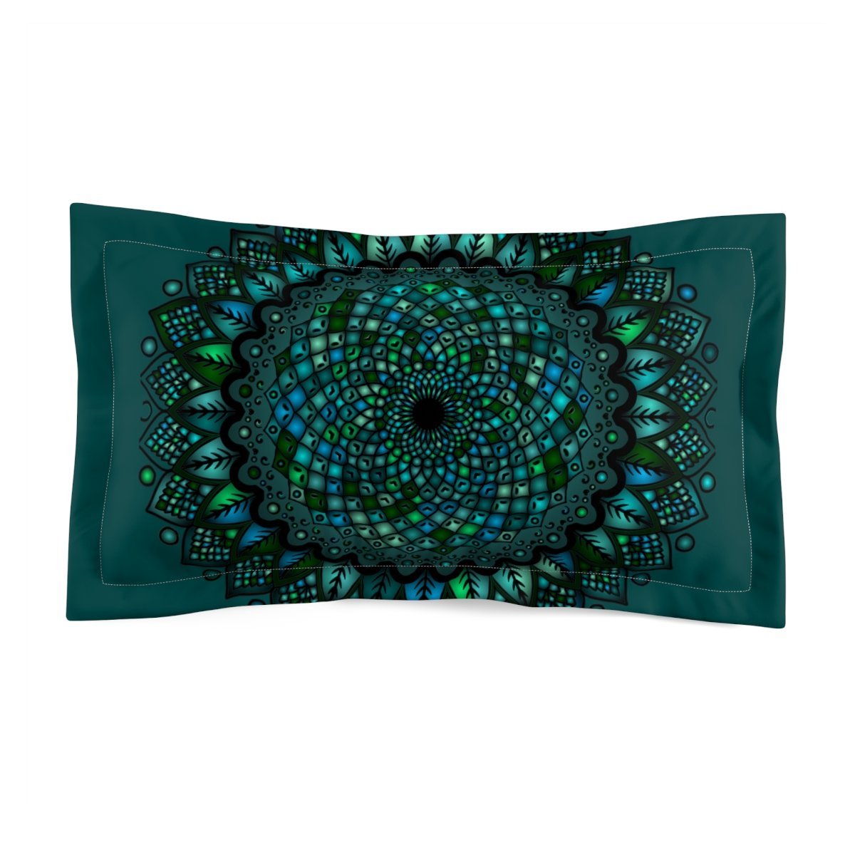 Microfiber Pillow Sham - Green Mandala Art Hand-Drawn on Dark Petroleum Green background