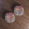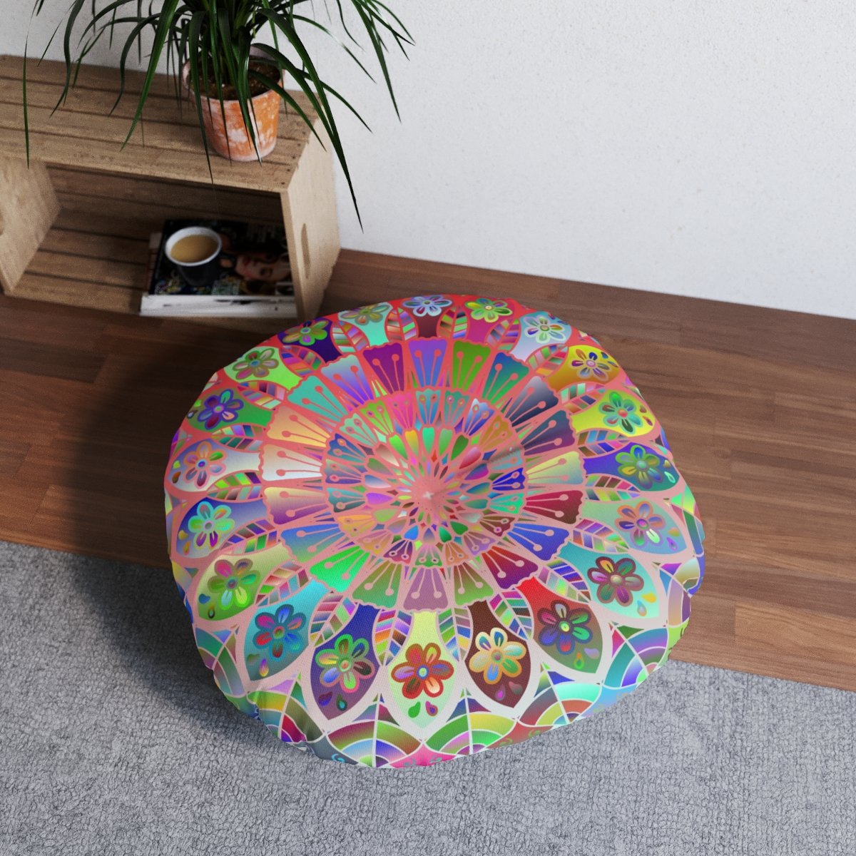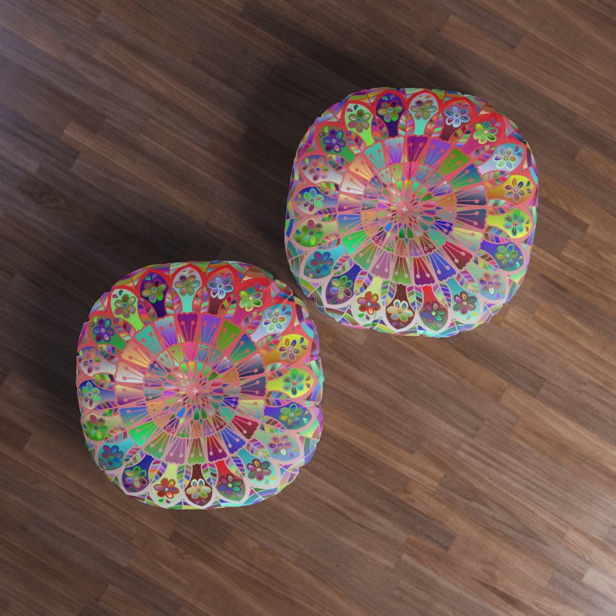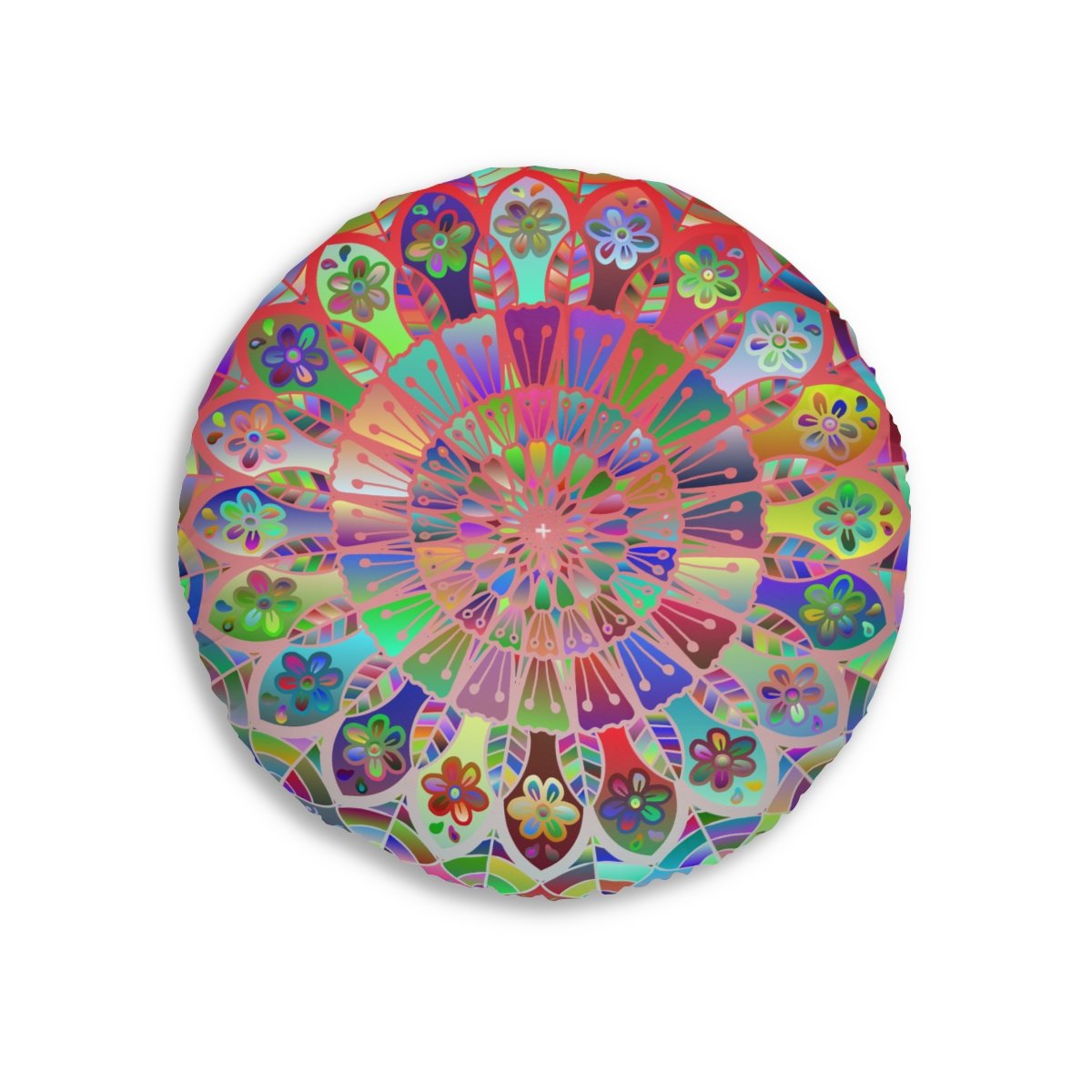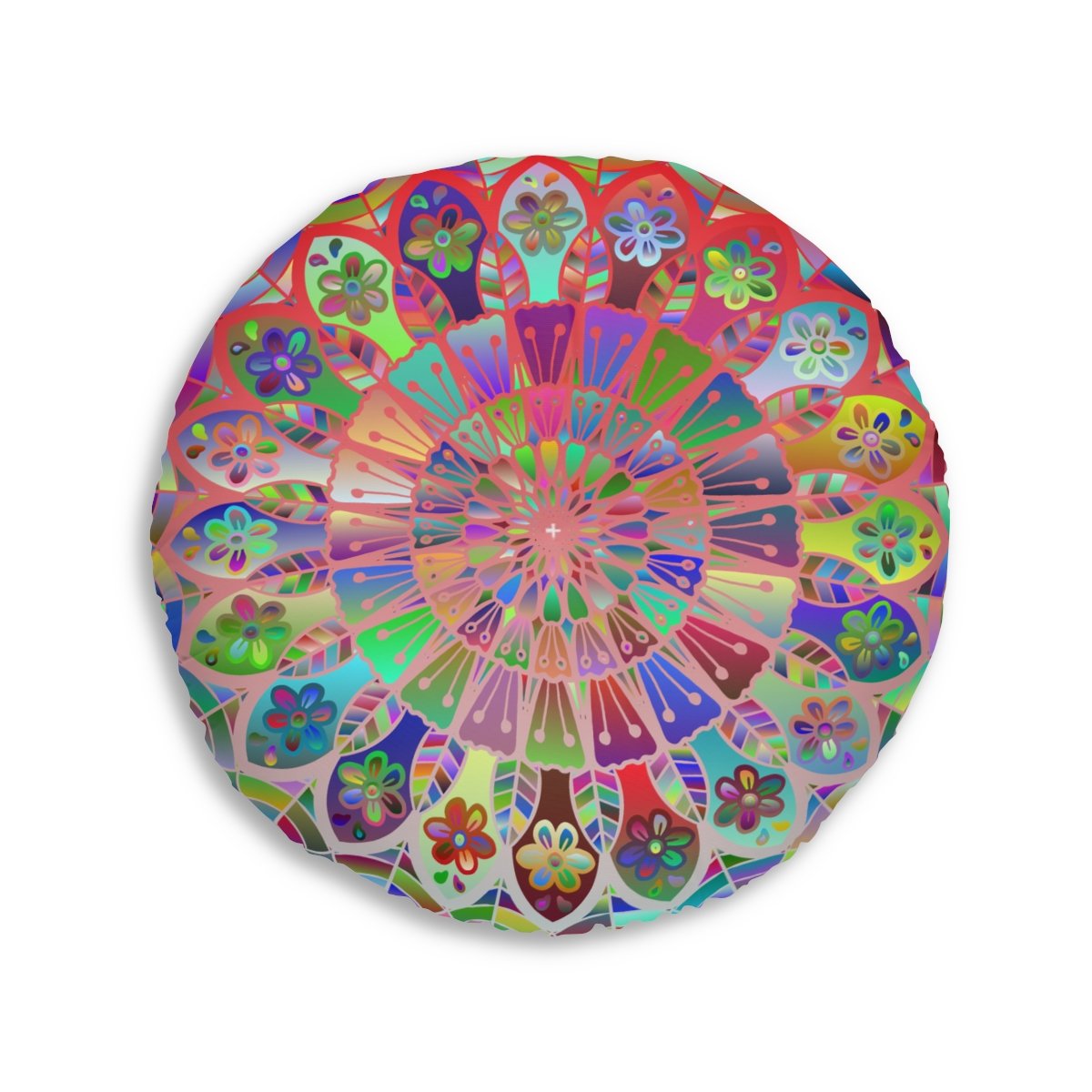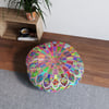 Add a mandala art touch to any resting area around the house with a Mandala Art round tufted floor pillow, which has a Beatiful colorful mandala Drawn by Hand in the middle on a Light Blue background . Shipped with its own filling, this floor pillow is as comfy as it is stylish. Bring your resting areas to life by adding a touch of stylish artwork handmade and catchy colors.