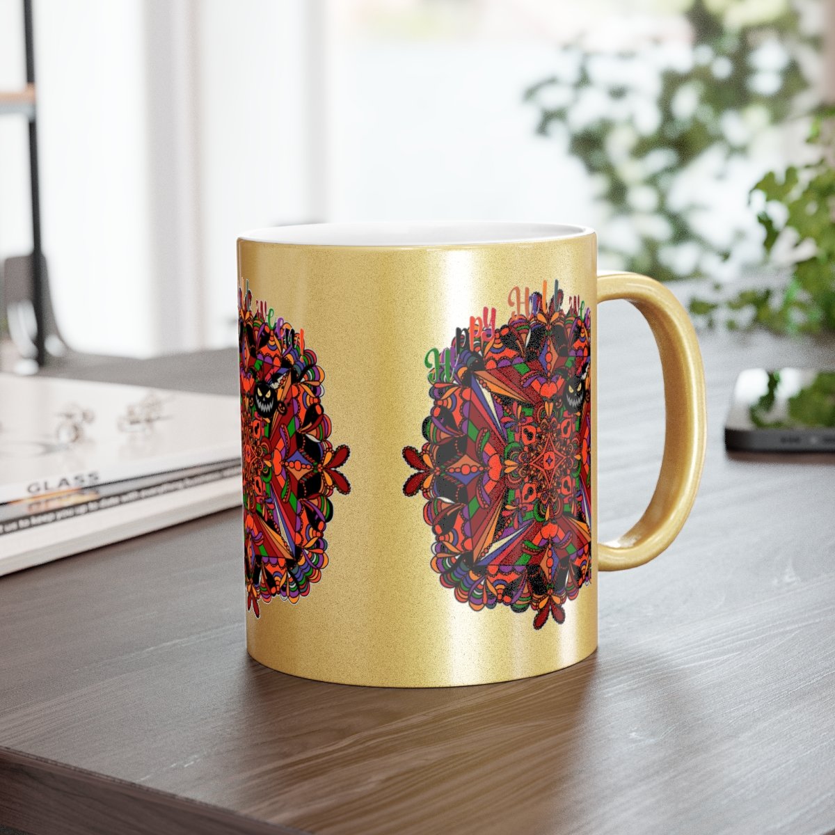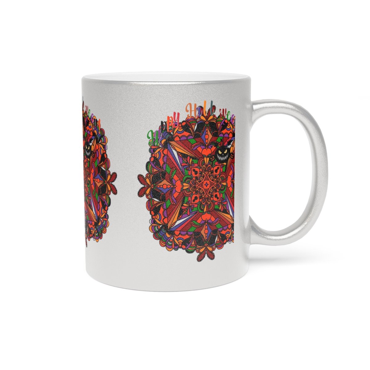 Discover the elegance of hand-drawn art with our Personalized Halloween Mandala Metallic Mug. Order yours today and enjoy a touch of seasonal sophistication!
