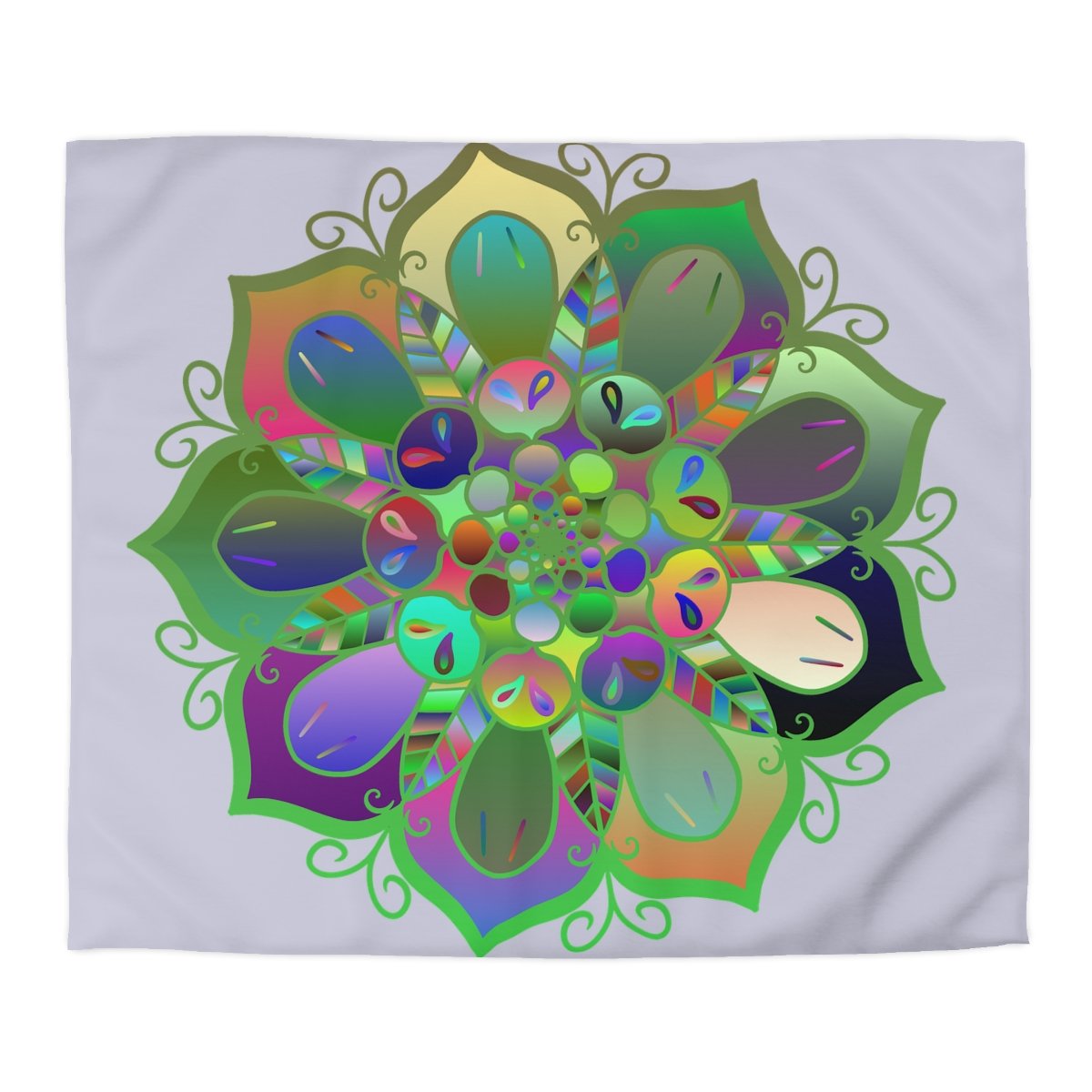 Microfiber Duvet Cover Mandala Art Drawn by Hand - Colorful Mandala on Light Grey background