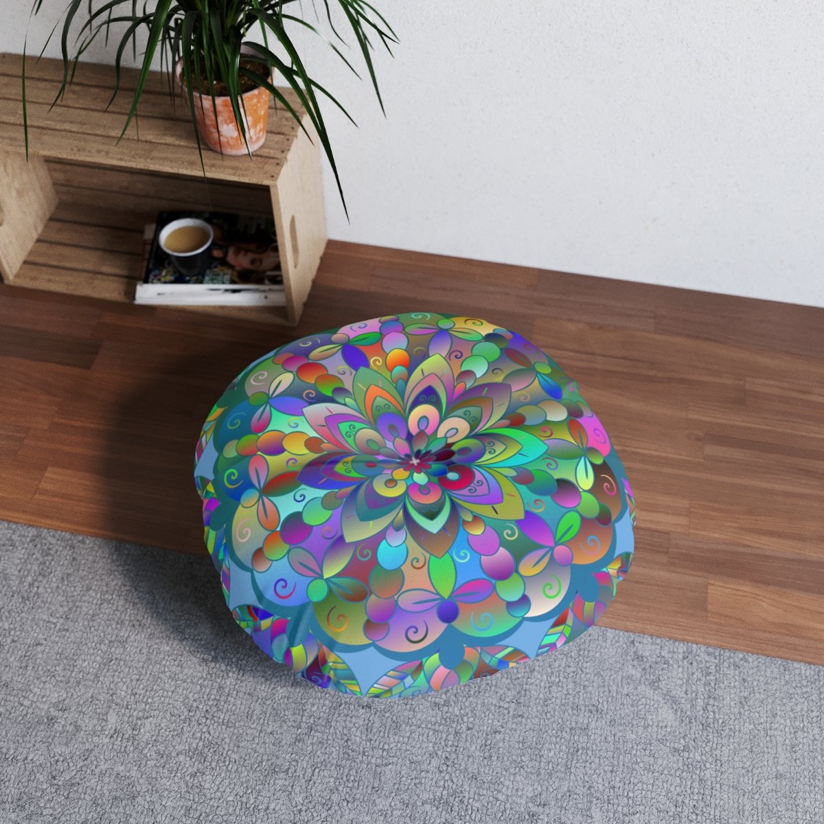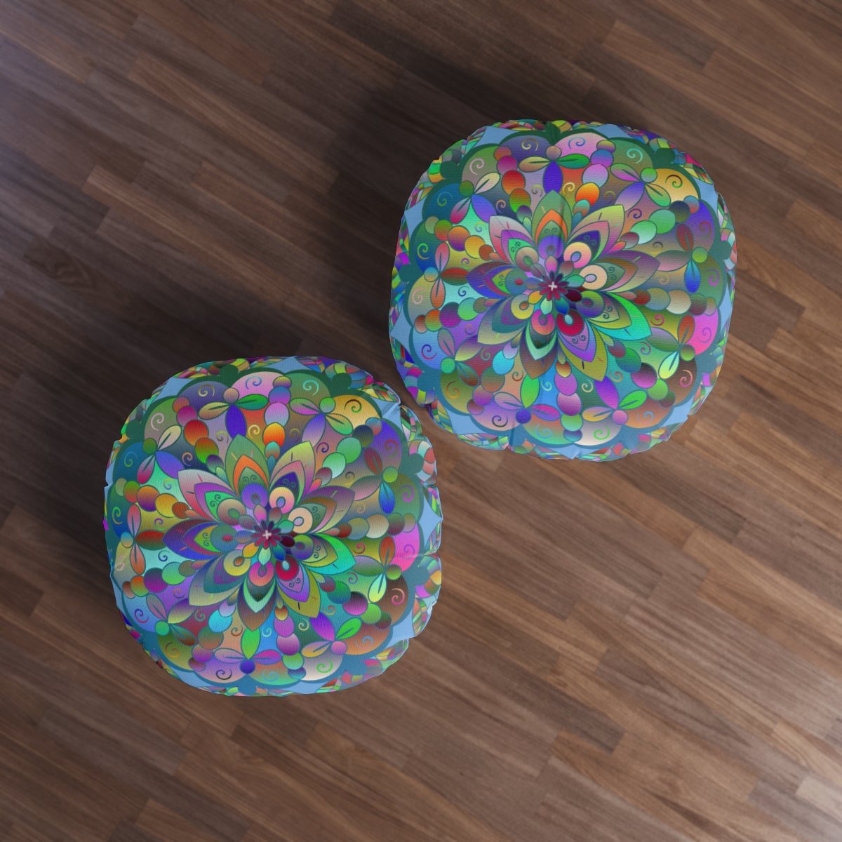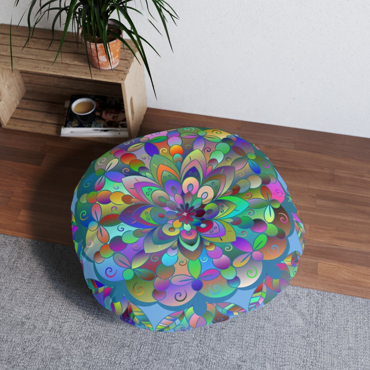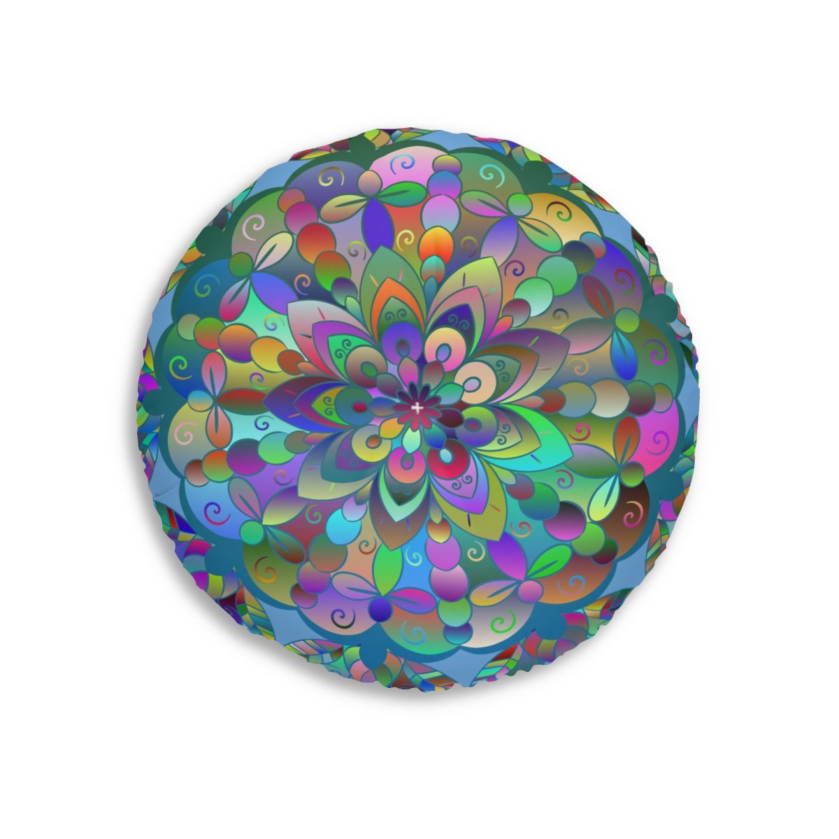 Add a mandala art touch to any resting area around the house with a Mandala Art round tufted floor pillow, which has a Beatiful colorful mandala Drawn by Hand in the middle on a Light Blue background . Shipped with its own filling, this floor pillow is as comfy as it is stylish. Bring your resting areas to life by adding a touch of stylish artwork handmade and catchy colors.