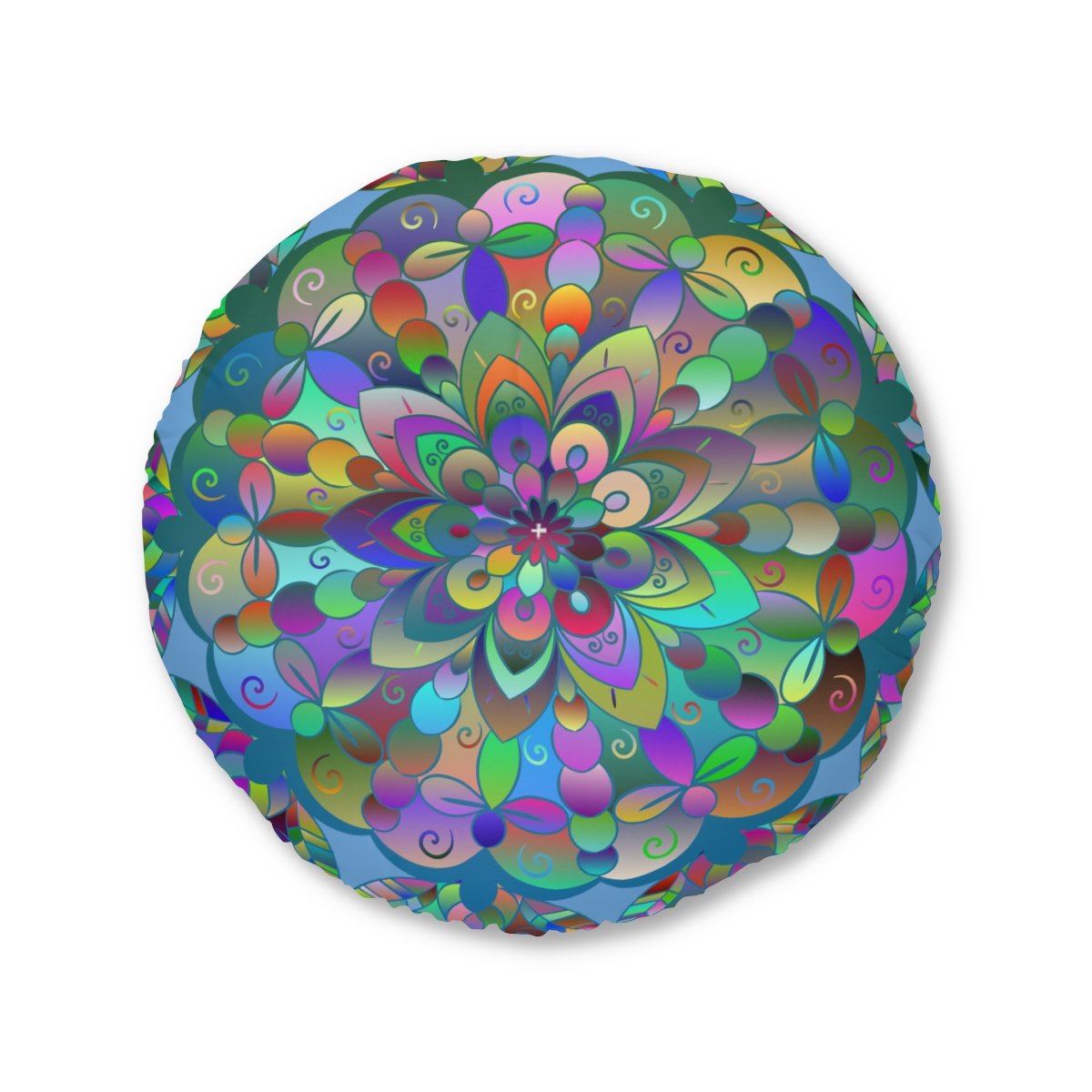 Floor Cushion Mandala Art Hand Drawn - Beautiful colorful Mandala on Light Blue background - Drawn by Hand - Tufted Floor Pillow, Round