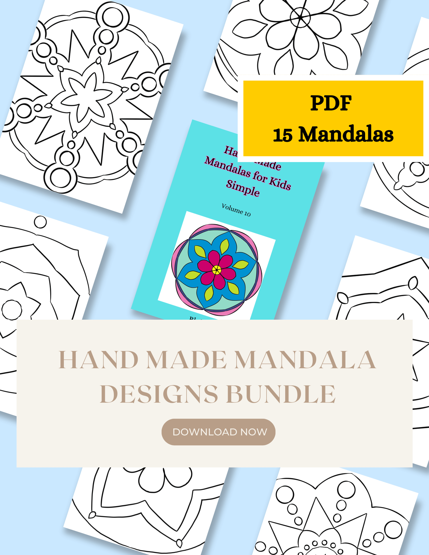 Whimsical Kids’ Mandala Coloring Pages - Printable Fun! 15 hand made Mandala Simple Designs Patterns, Creative Expression, mandala for kids