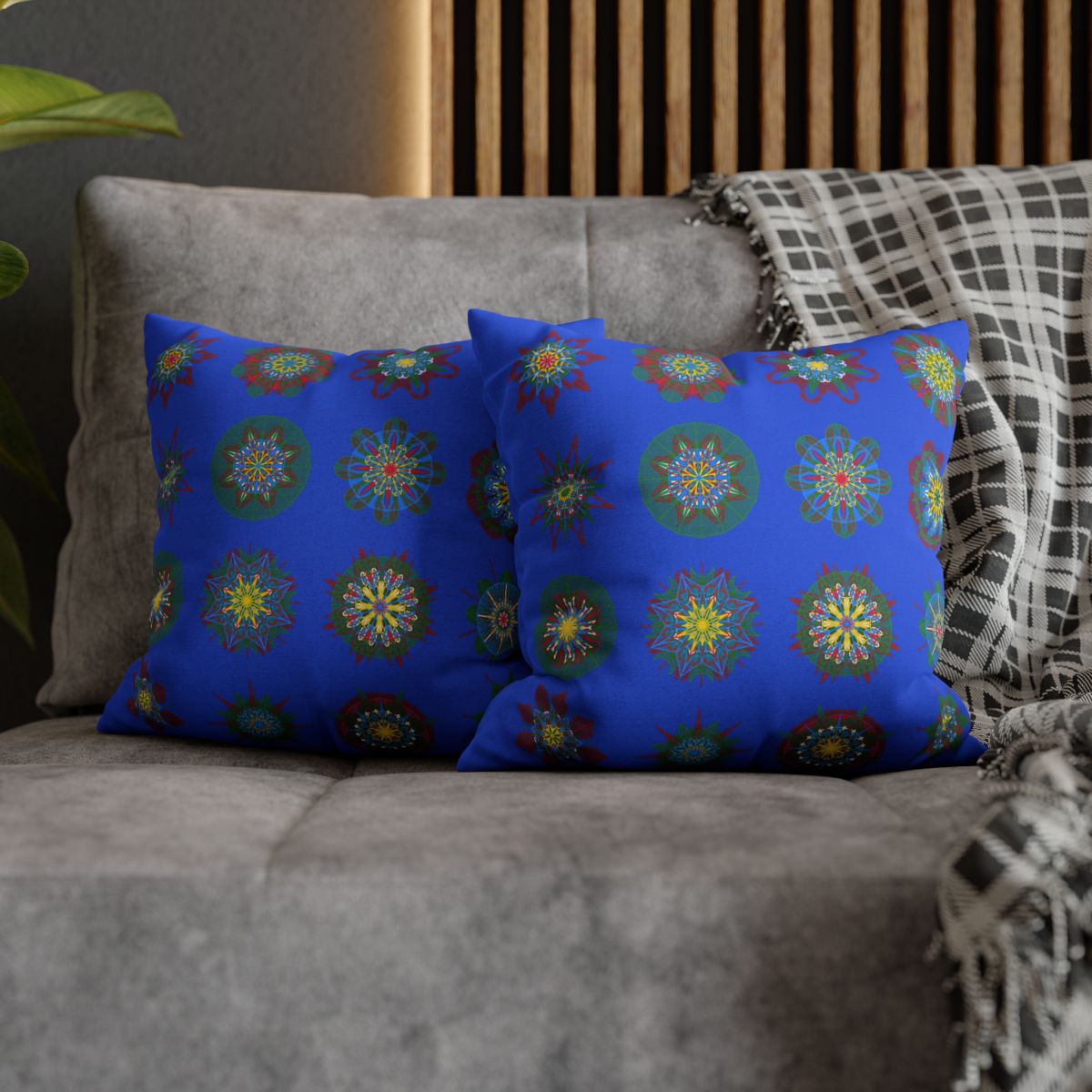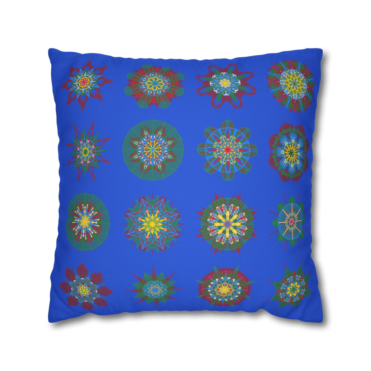 Christmas pillowcase for bed - Spun Polyester Square Pillowcase Mandala Art - Original Fine Art - Hand-drawn, Royal Blue