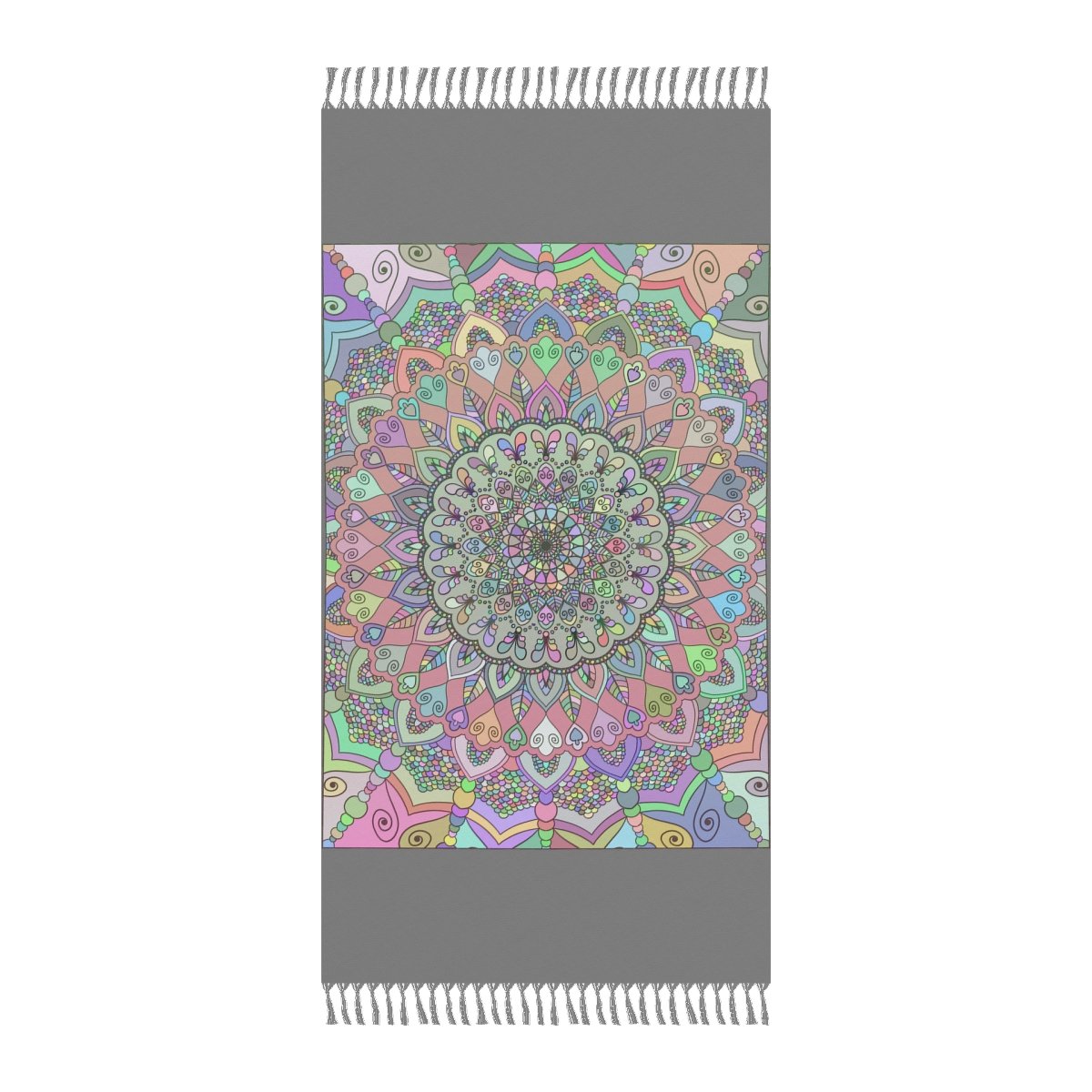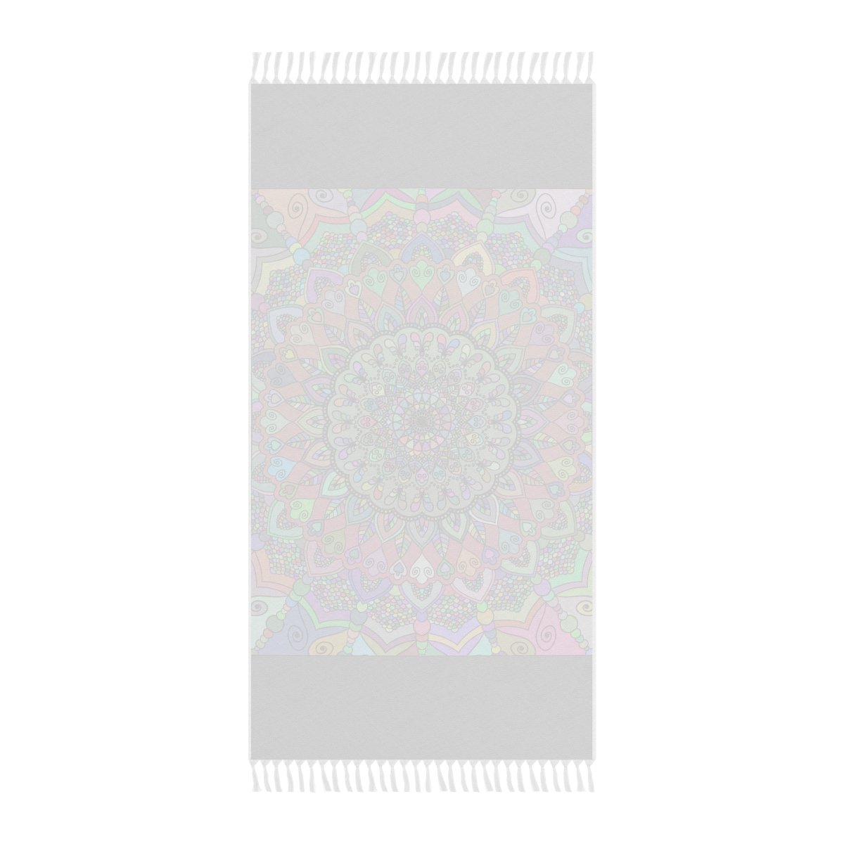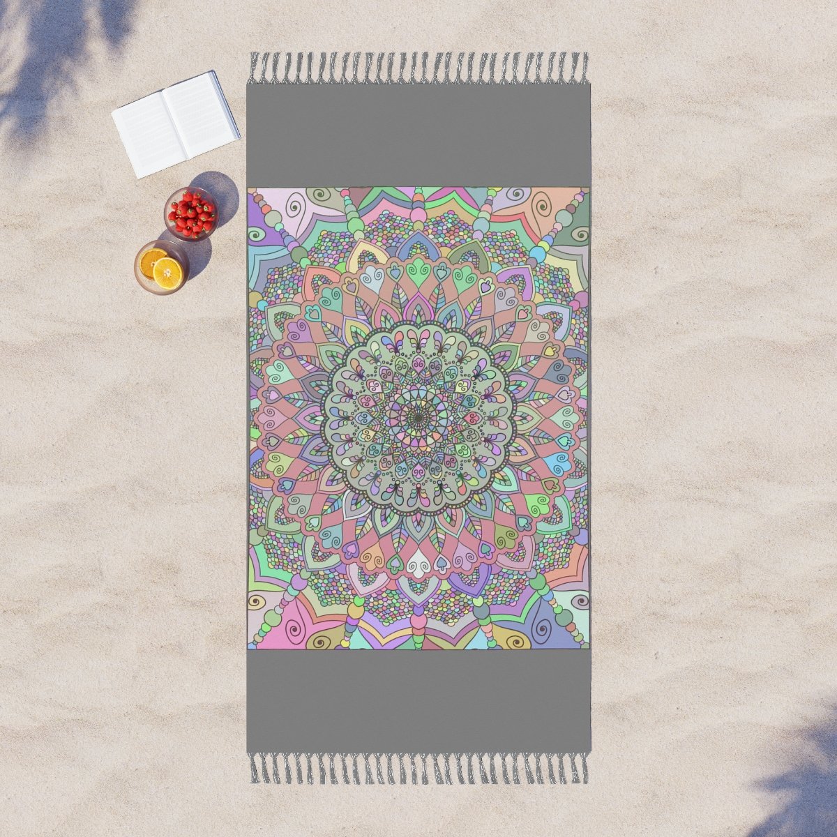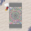 Boho Beach Cloth decorated with Mandala Art - Original Fine Art Hand-Drawn - Light Gray, Pastel Colors