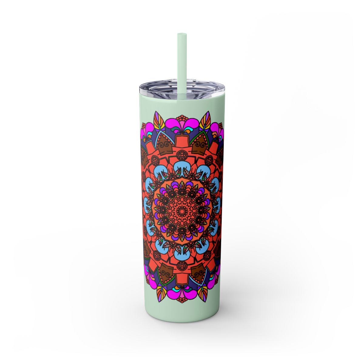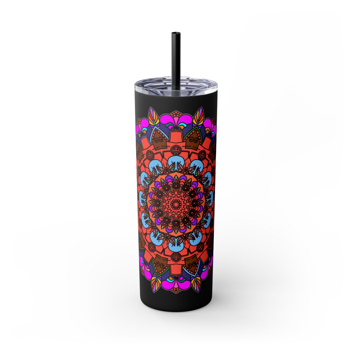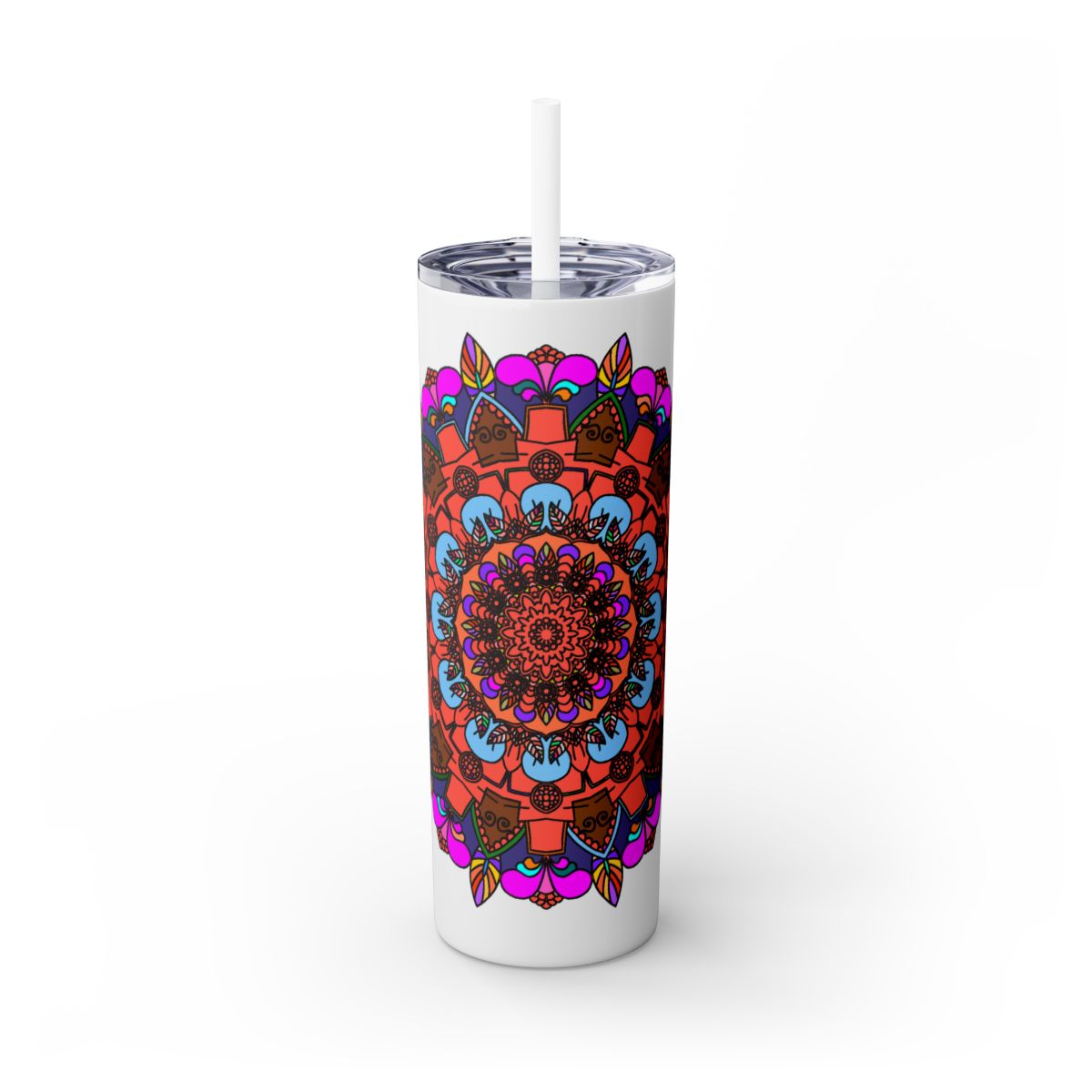 20oz Skinny Tumbler with Hand-drawn Colorful Mandala Design - Keeps Drinks Hot/Cold - BPA-Free