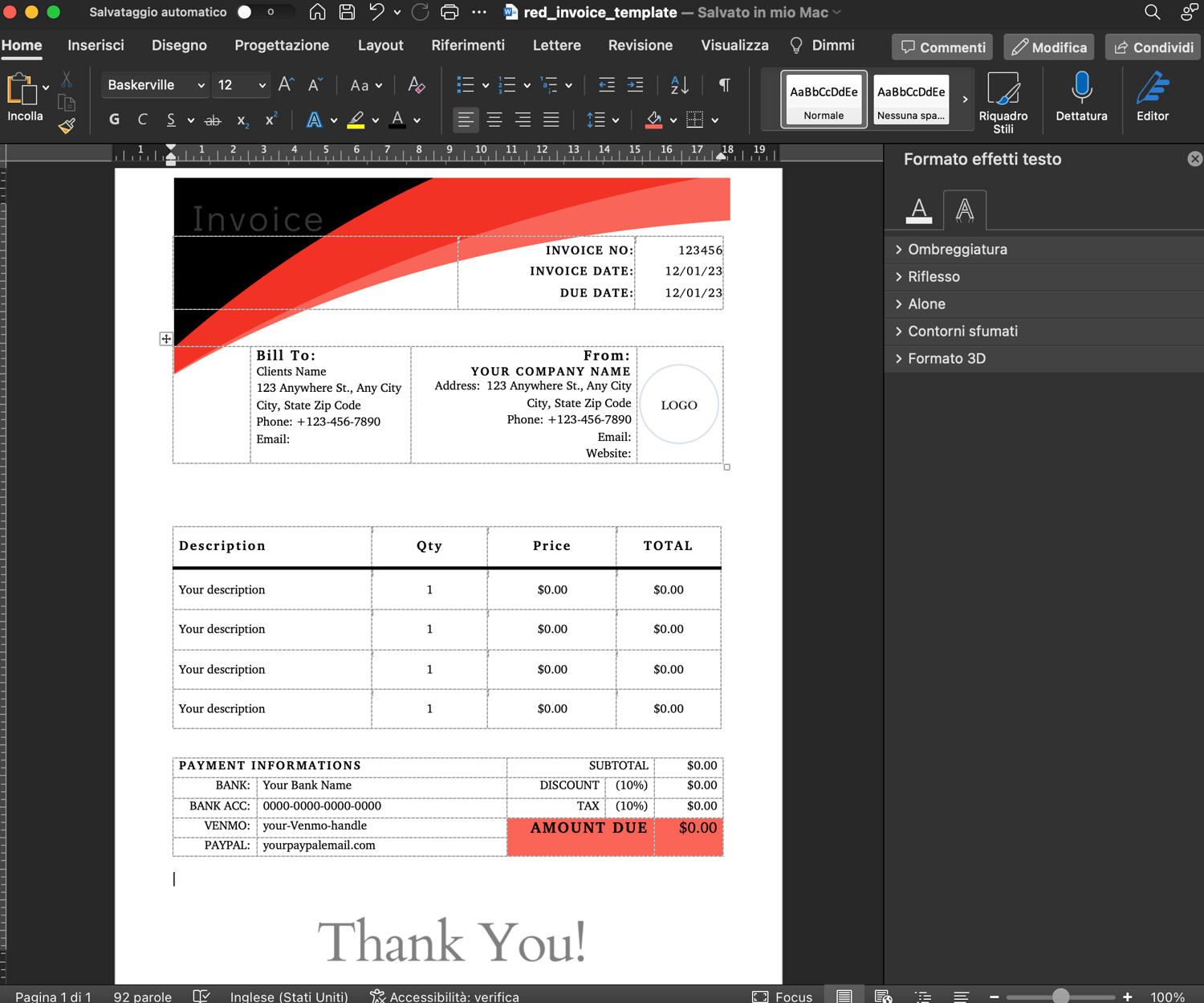 Introducing the Red Invoice Template, a perfect solution tailored for small businesses to streamline their invoicing process. Created with care and attention to detail, this template is designed in the US letter format (8.5x11 inches) and is fully customizable in both Word and Excel.