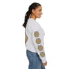 Durability is key with double-needle stitching at the shoulder, armhole, neck, waistband, and cuff seams. Plus, say goodbye to itchiness thanks to the gray, pearlized tear-away label. Made using 100% ethically grown US cotton and OEKO-TEX-certified dyes, this sweatshirt is not only a stylish choice but also a sustainable one.