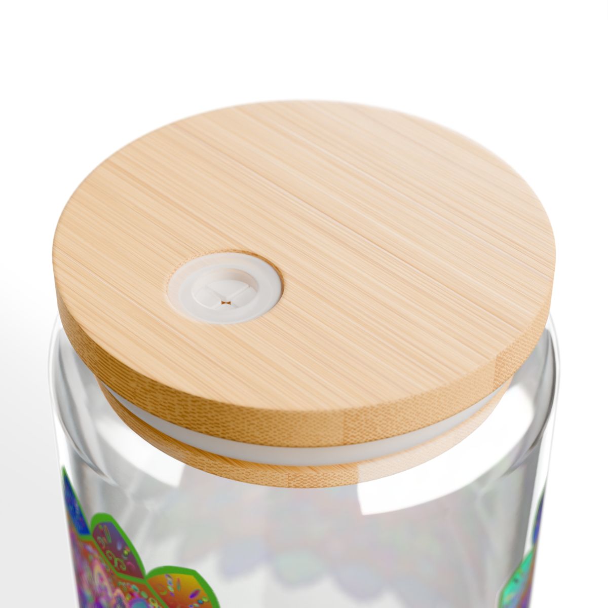 Elevate your beverage experience with this exquisitely designed sipper glass, featuring hand-drawn colorful mandala art. Crafted from clear tempered glass, this 16oz sipper offers durability, elegance, and a sleek aesthetic that suits any setting.