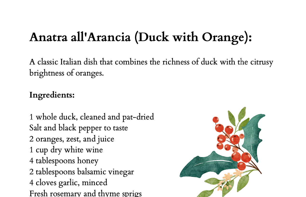 Get ready for a food adventure with "Yummy Holiday Recipes," a cool cookbook filled with tasty Italian-inspired treats for your holiday table. Made for people who love cooking and eating good food, this collection has easy recipes to make your holiday meals awesome.