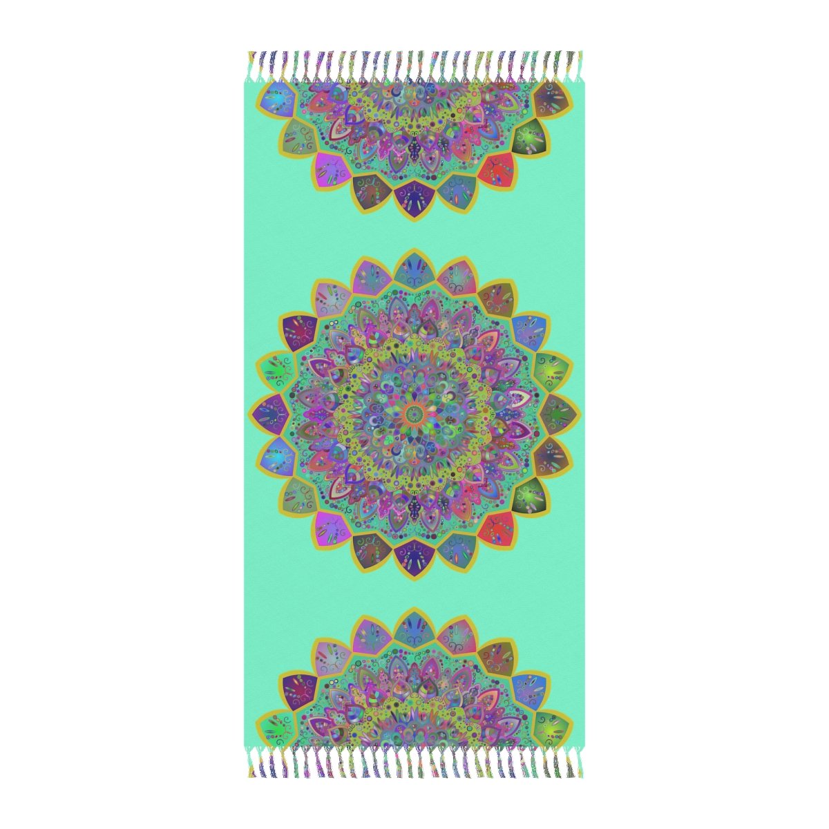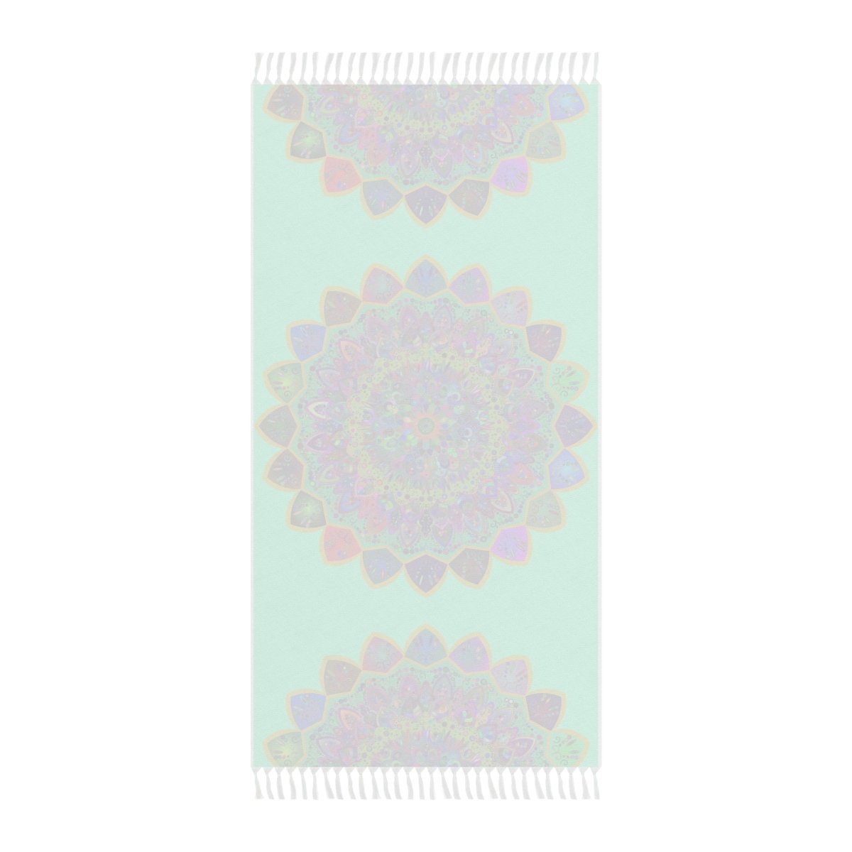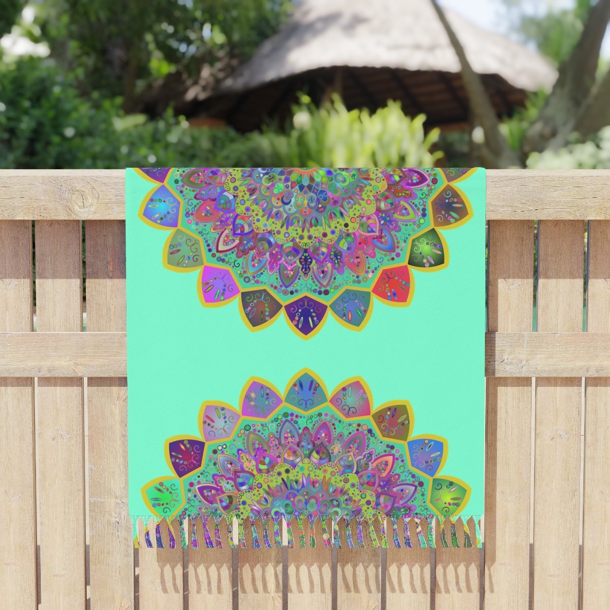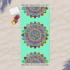 Boho Beach Cloth decorated with Mandala Art - Original Fine Art Hand-Drawn - Aquamarine