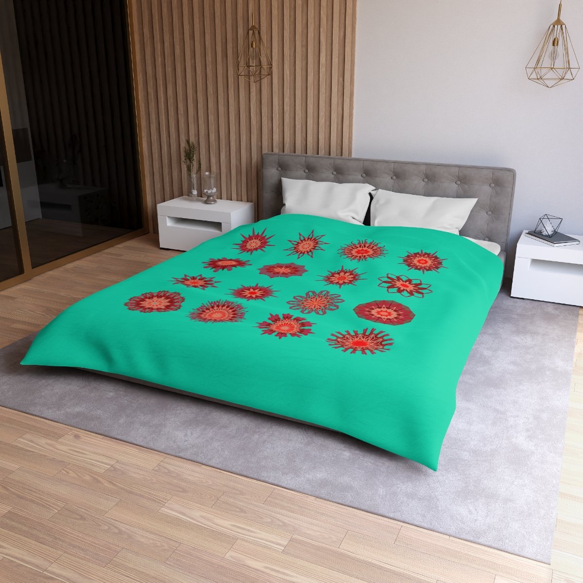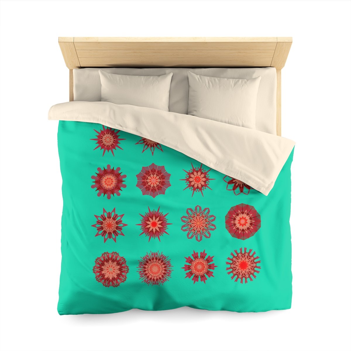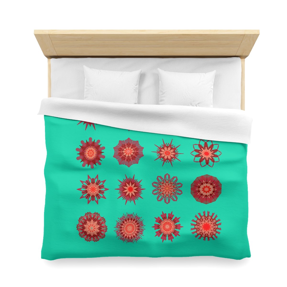 Christmas Microfiber Duvet Cover Mandala Art Drawn by Hand - Mandala on Aqua background