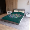 Microfiber Duvet Cover Mandala Art Drawn by Hand - Colorful Mandala on Dark Petroleum Green background