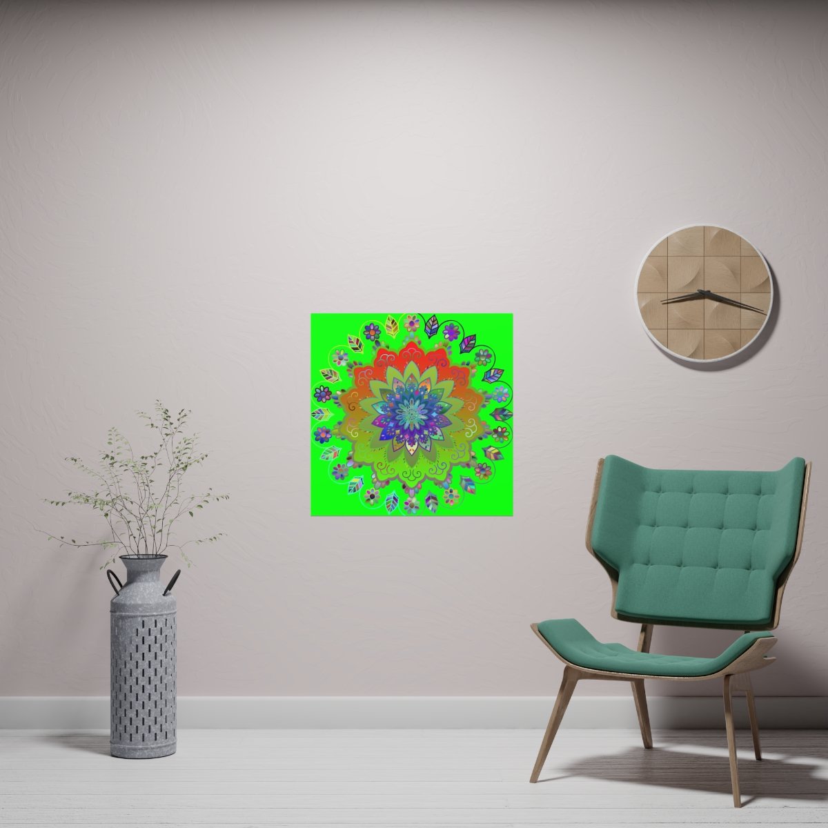Square Matte Paper Poster Featuring Hand-Drawn Bright Mandala Art - Green