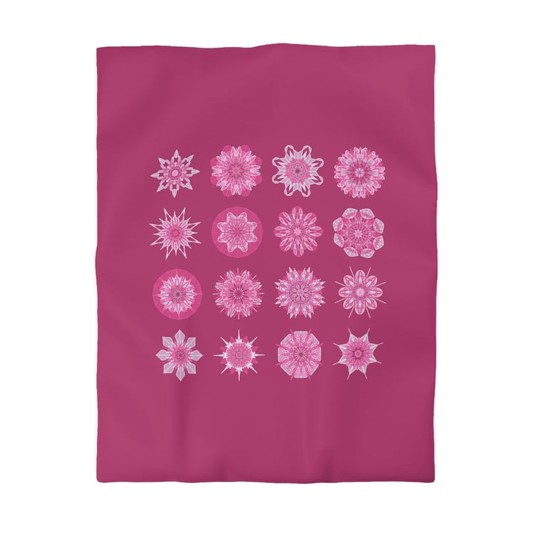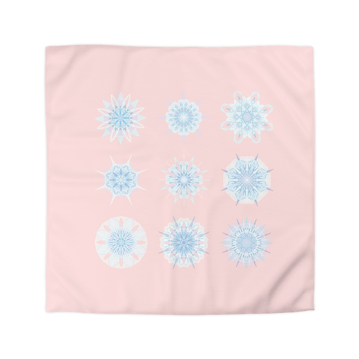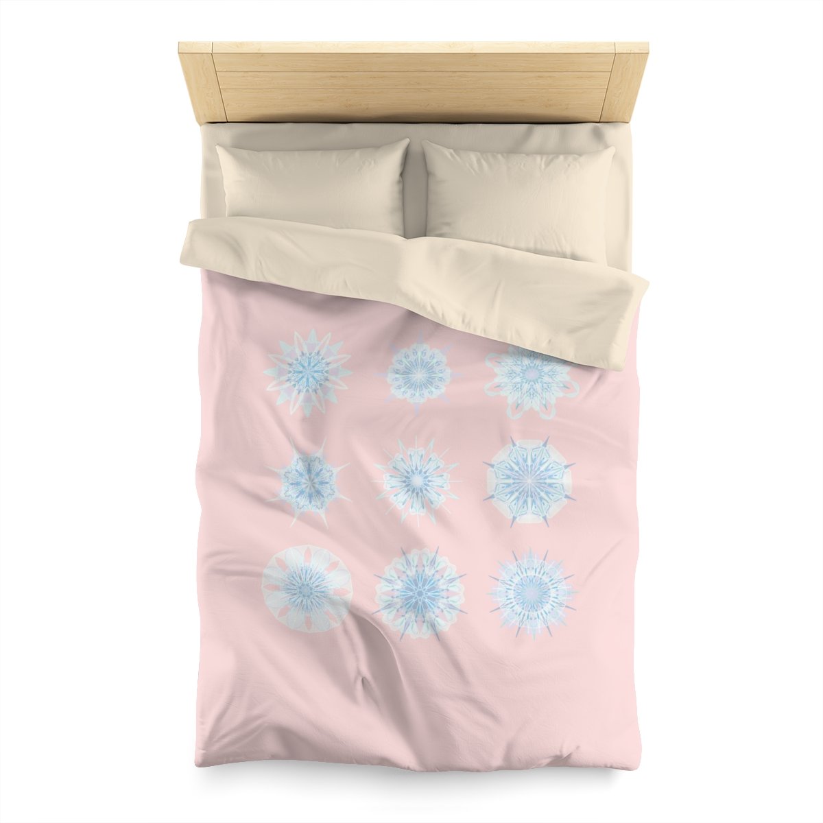 Christmas Snowflakes Microfiber Duvet Cover Mandala Art Drawn by Hand - Mandala on Soft Blush Pink background