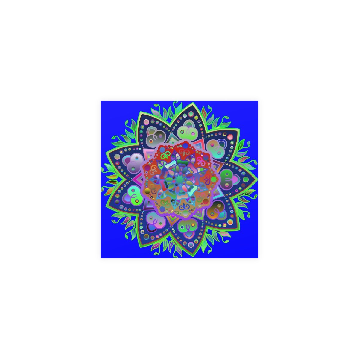 Transform any space with the vibrant allure of custom artwork. This square poster, adorned with super bright, hand-drawn mandala art, is designed to elevate any room with its vivid colors and intricate details.