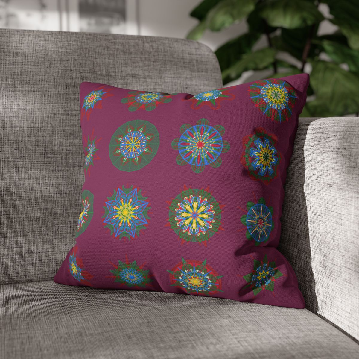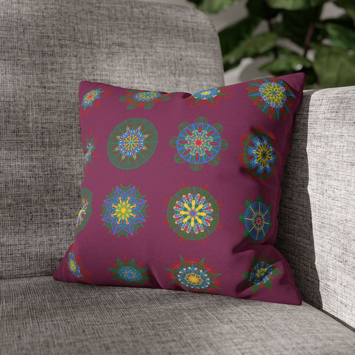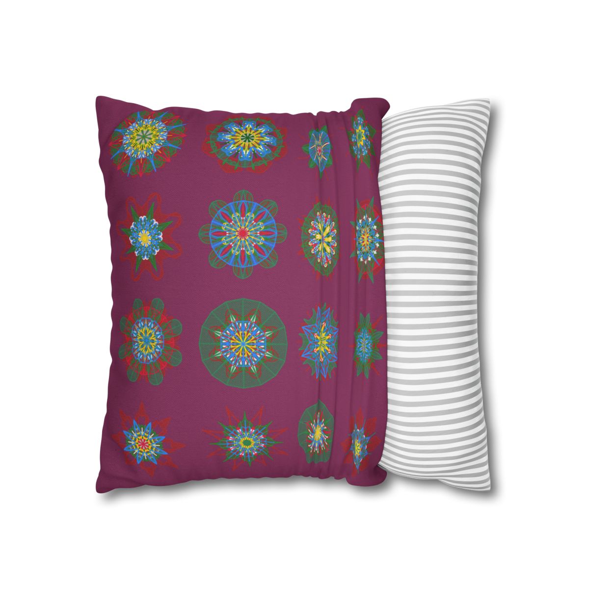 Christmas pillowcase for bed - Spun Polyester Square Pillowcase Mandala Art - Original Fine Art - Hand-drawn, Dark Raspberry