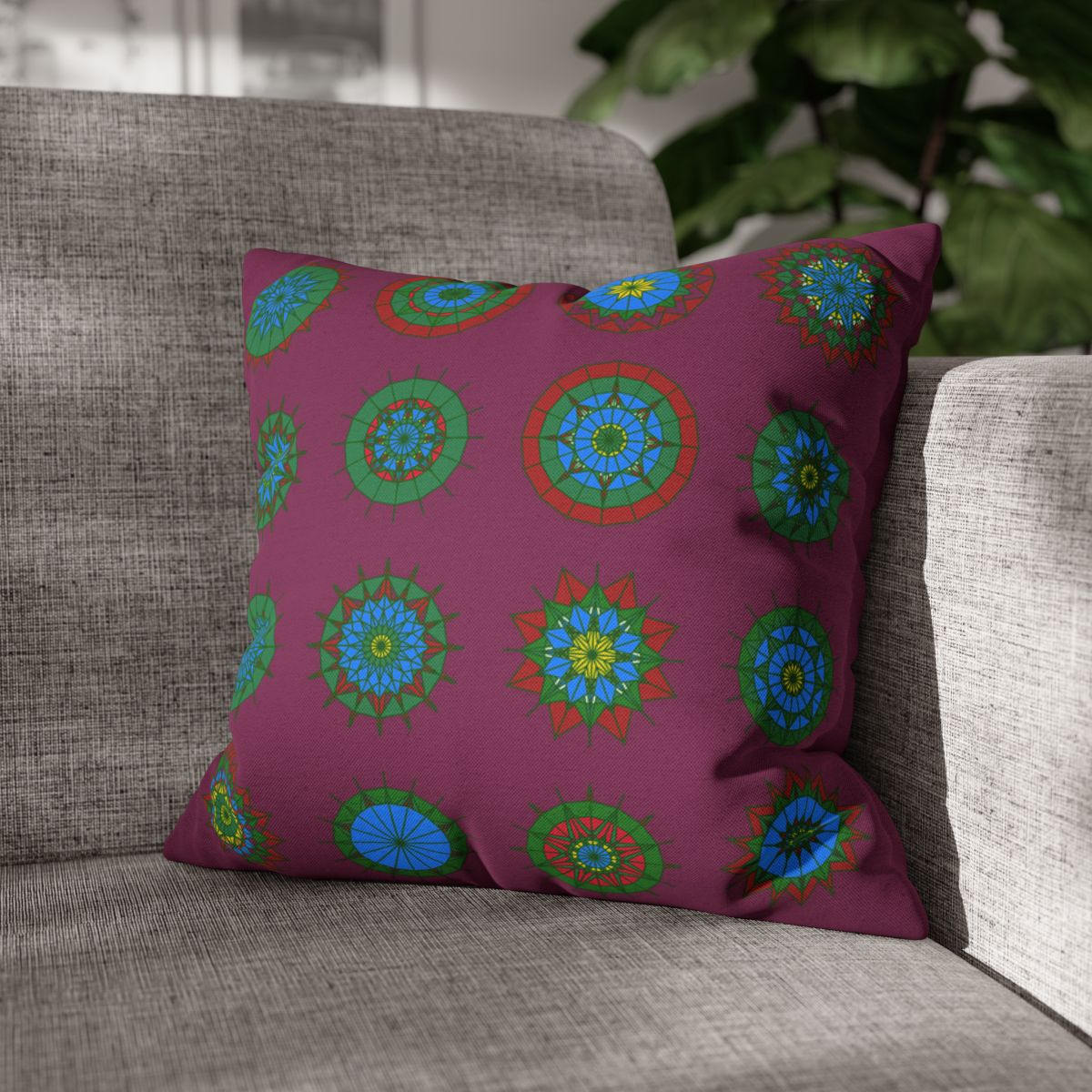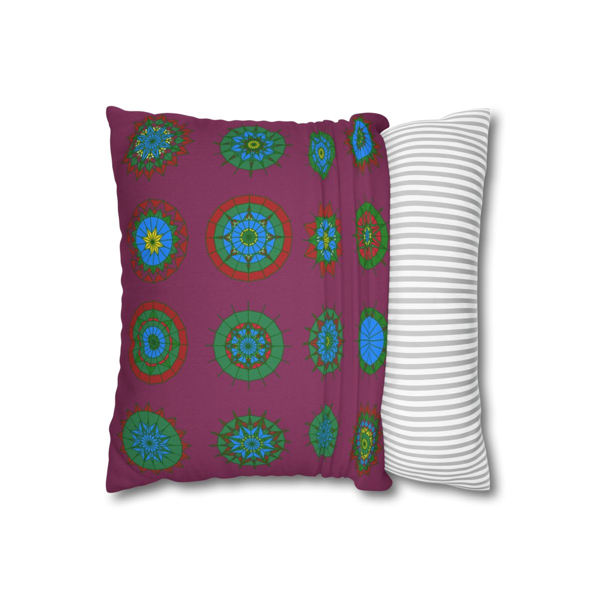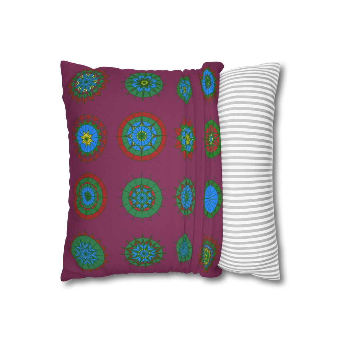 Christmas pillowcase for bed - Spun Polyester Square Pillowcase Mandala Art - Original Fine Art - Hand-drawn, Dark Raspberry