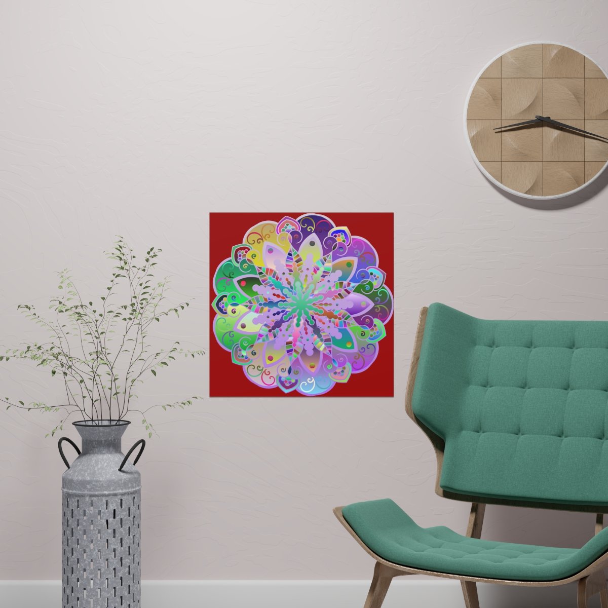 Transform any space with the vibrant allure of custom artwork. This square poster, adorned with super bright, hand-drawn mandala art, is designed to elevate any room with its vivid colors and intricate details.