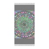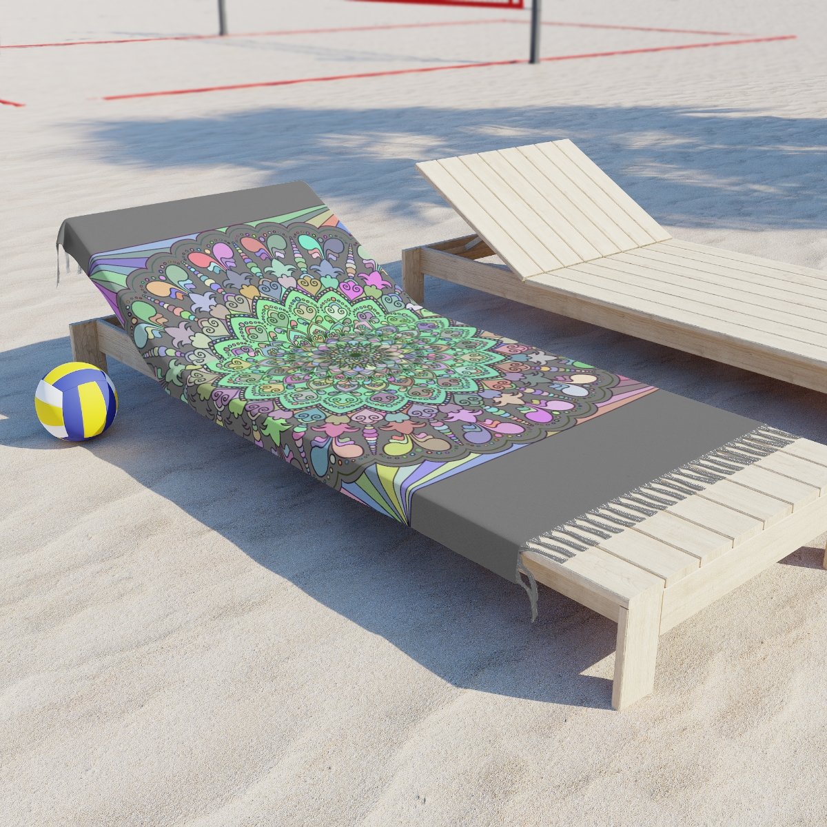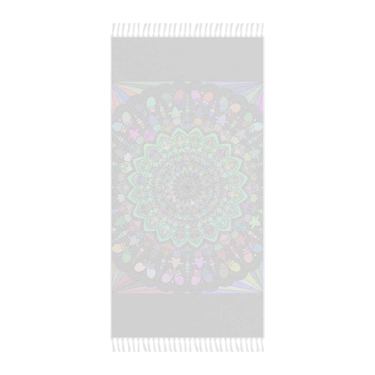 Boho Beach Cloth decorated with Mandala Art - Original Fine Art Hand-Drawn - Light Gray, Pastel Colors